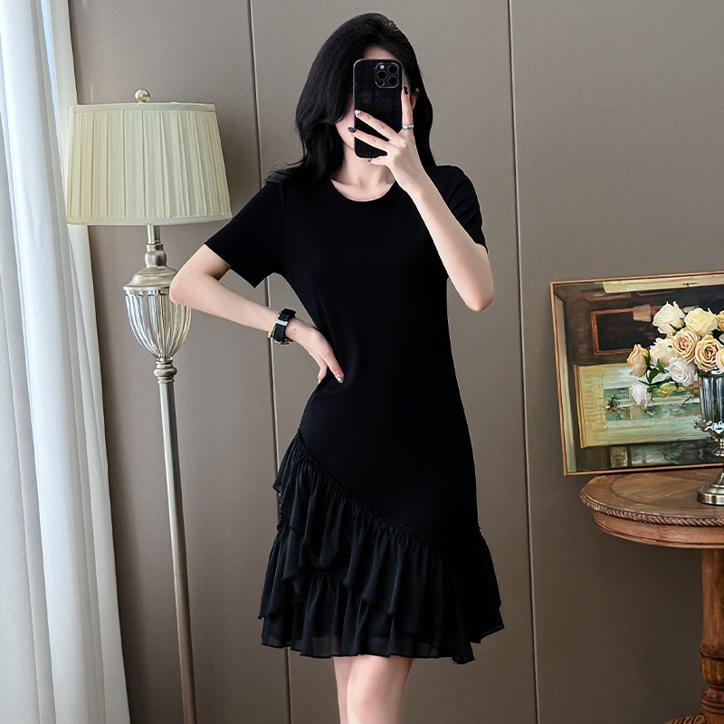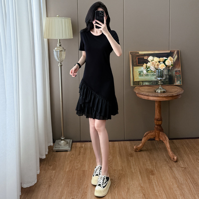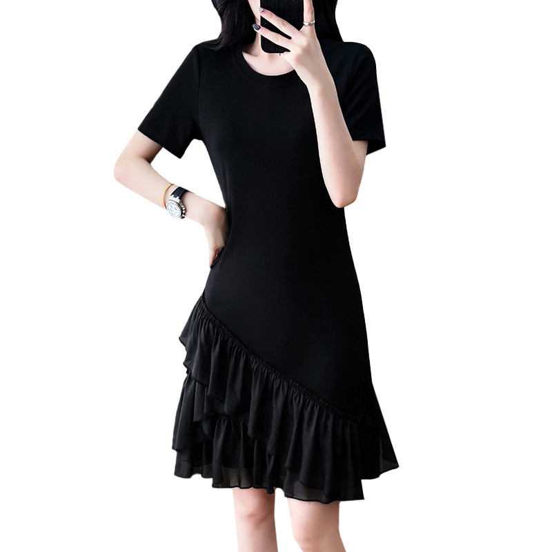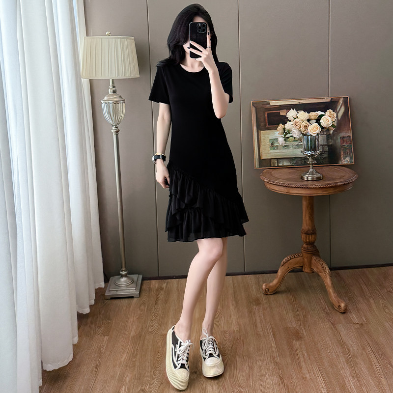 嫩妈T恤裙产后哺乳裙 大码 哺乳衣外出拼接连衣裙夏时尚 显瘦中长款