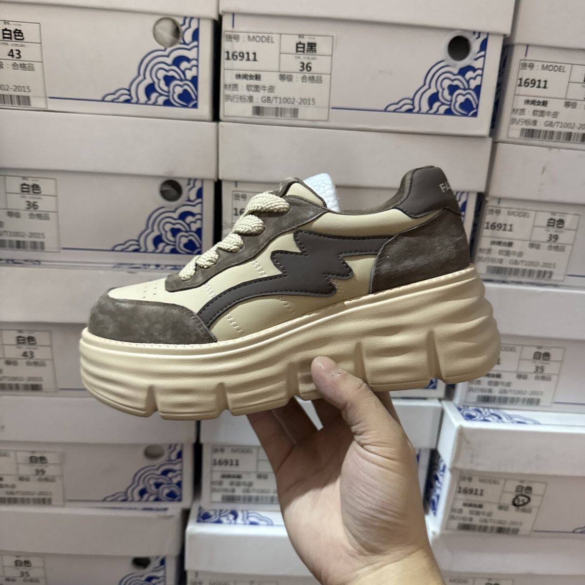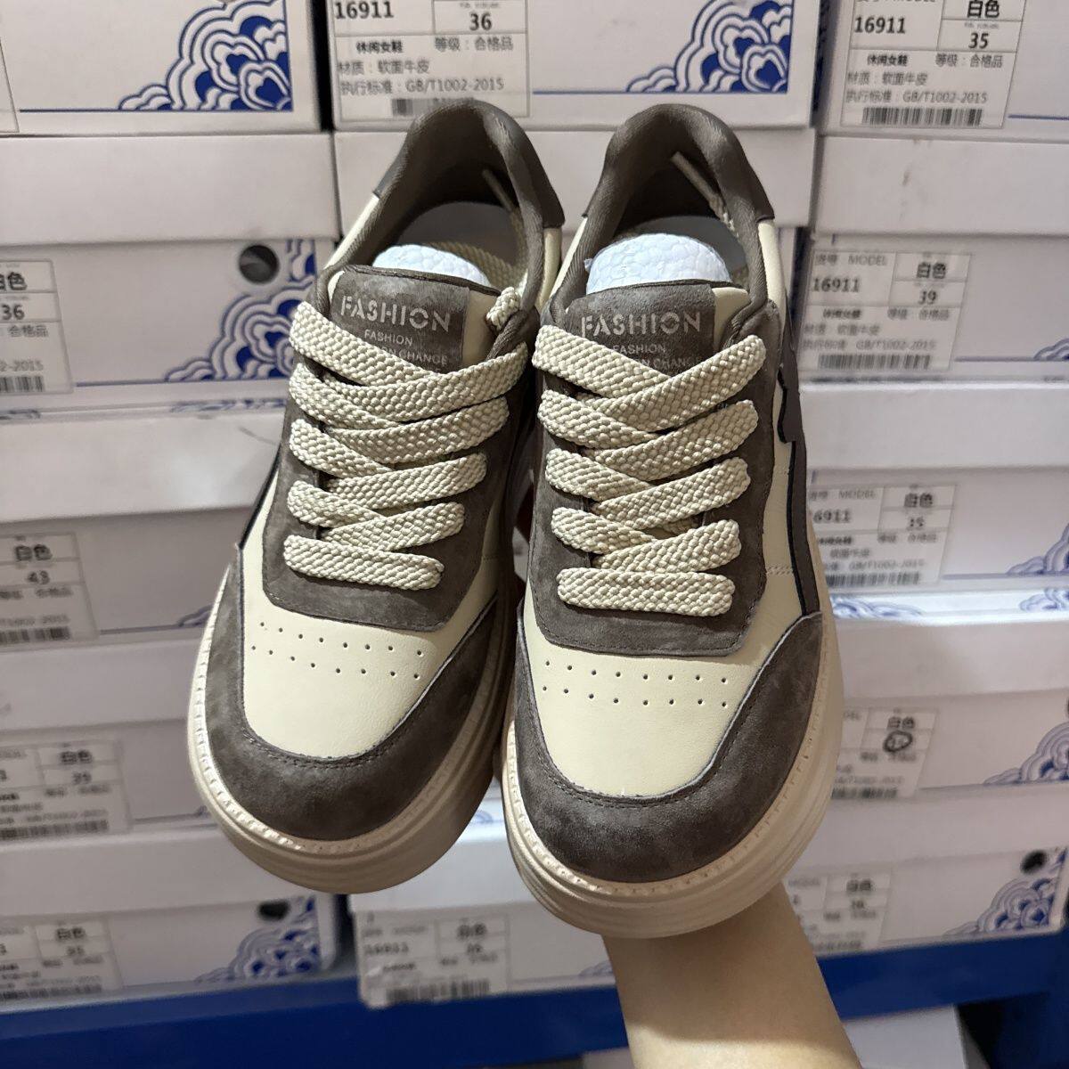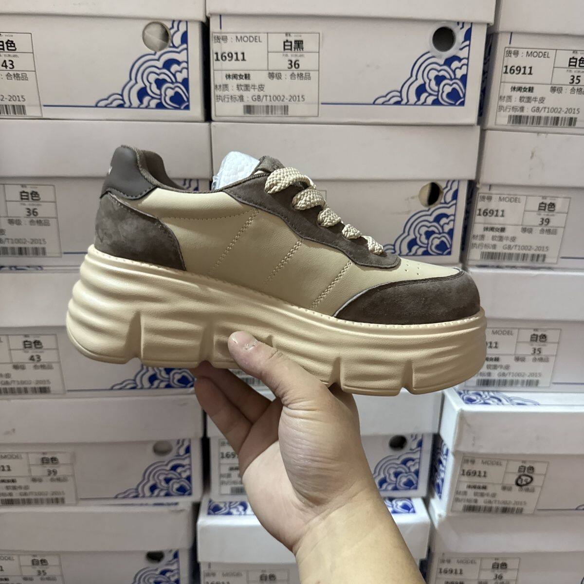增高小个子板鞋 女春秋新款 潮 厚底真皮松糕鞋 6cm轻便商场撤柜断码