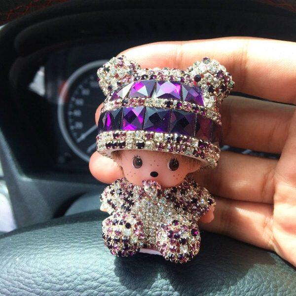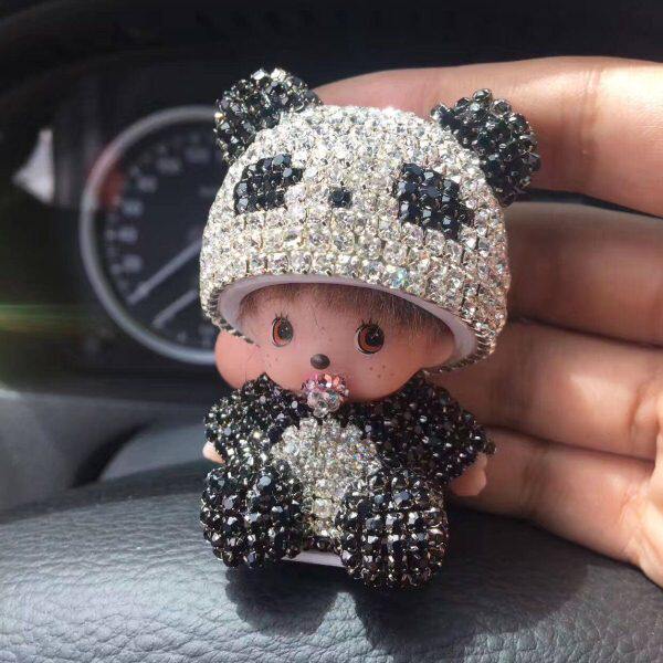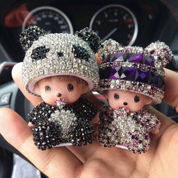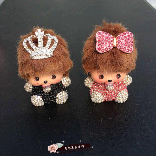 情侣 品水晶钻创意娃娃男女款 汽车摆件蒙奇奇可爱公仔装 饰品内饰装