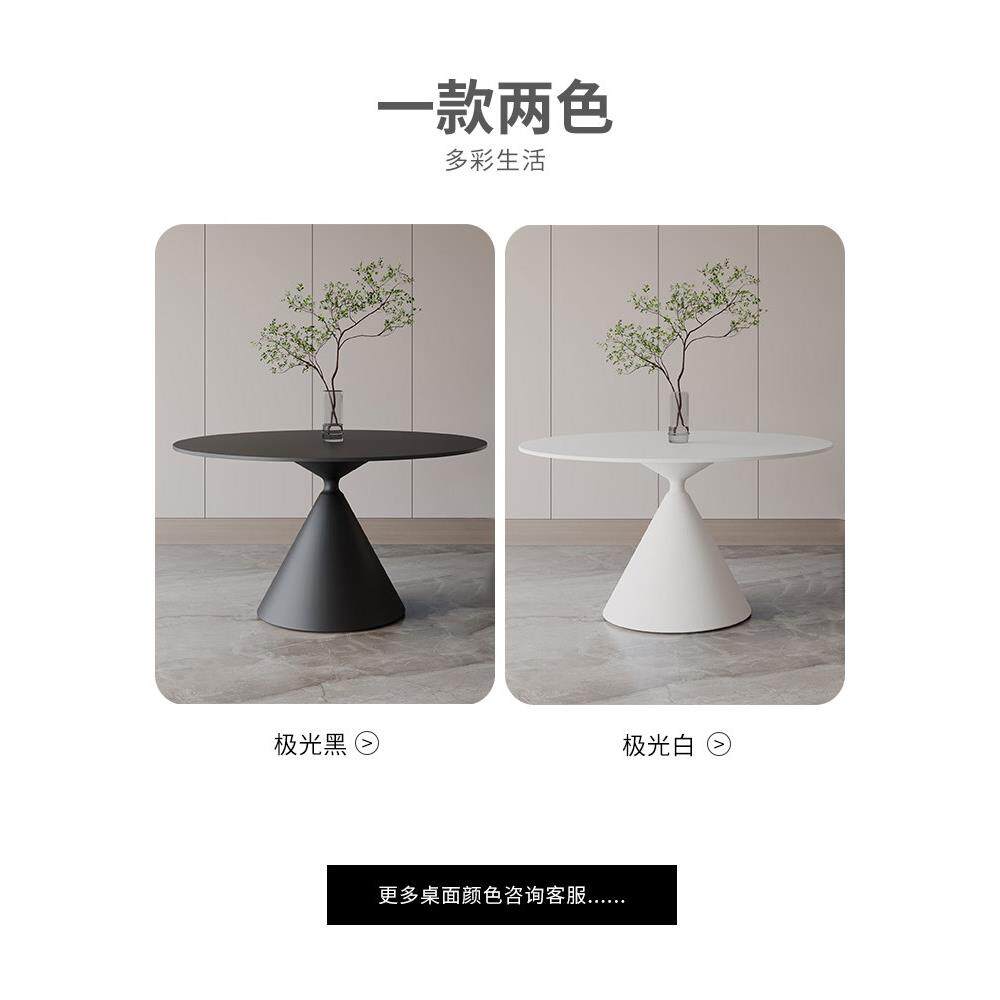 纯黑岩板圆桌极简创意现代简约圆形餐桌德利丰小户型家用飞碟饭桌