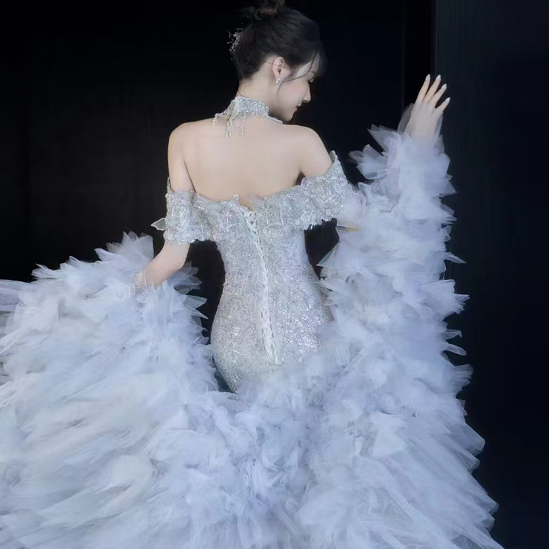 鱼尾裙出租 宴会晚装 婚纱礼服租赁韩版 一字肩重工鱼尾礼服女长款