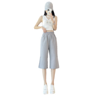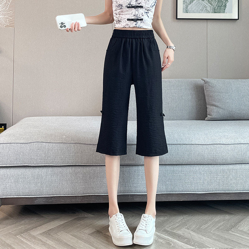 七分裤 国风亚麻7分微喇叭裤 子女夏季 新款 女潮 薄款 冰丝棉麻新中式