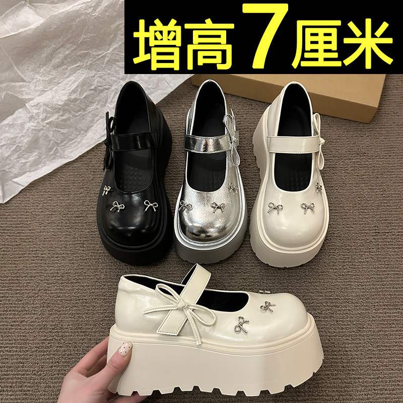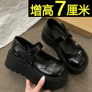 黑色小皮鞋 松糕厚底单鞋 小个子增高巨好看玛丽珍鞋 新款 女2026春季