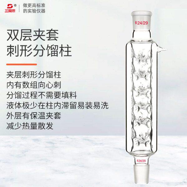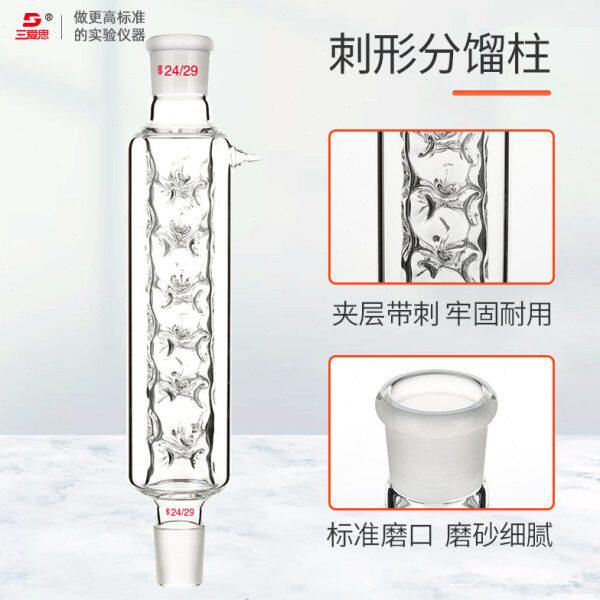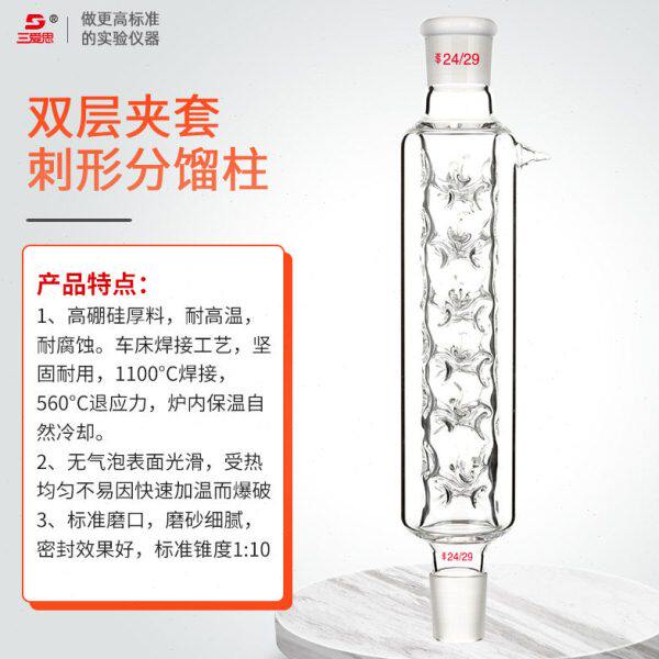 C10 小咀 欣维尔精馏柱垂刺分馏柱玻璃精馏柱带夹层刺型分馏柱填充式 保温夹层分馏柱具可拆式