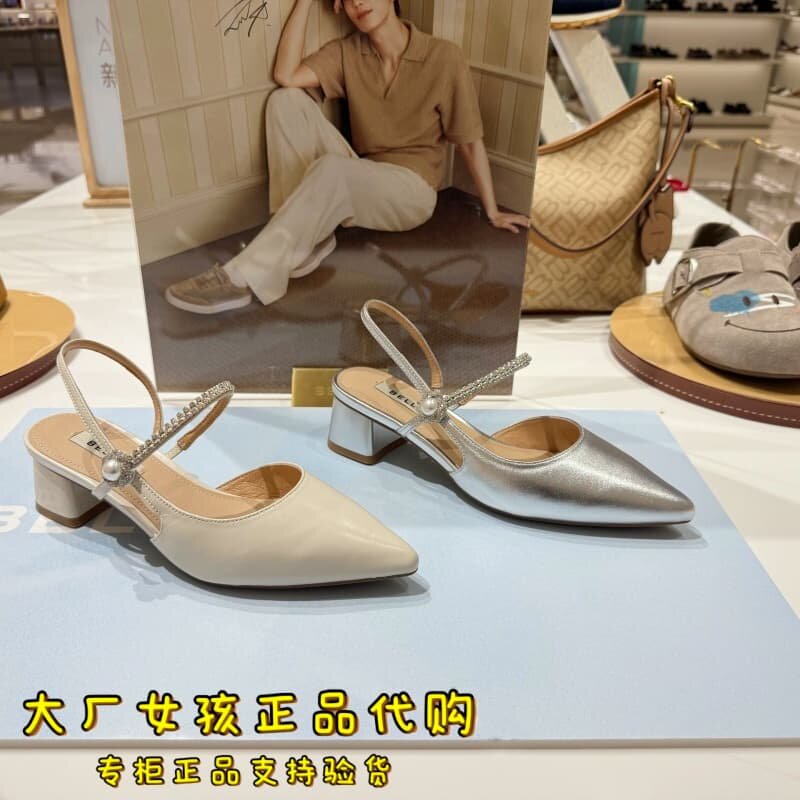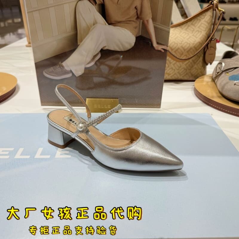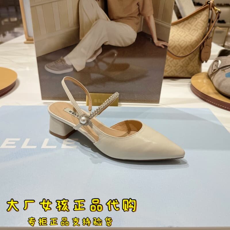 女浅口单鞋 羊皮气质粗高跟包头凉鞋 F5F1DBH6 百丽2026夏季 专柜正品