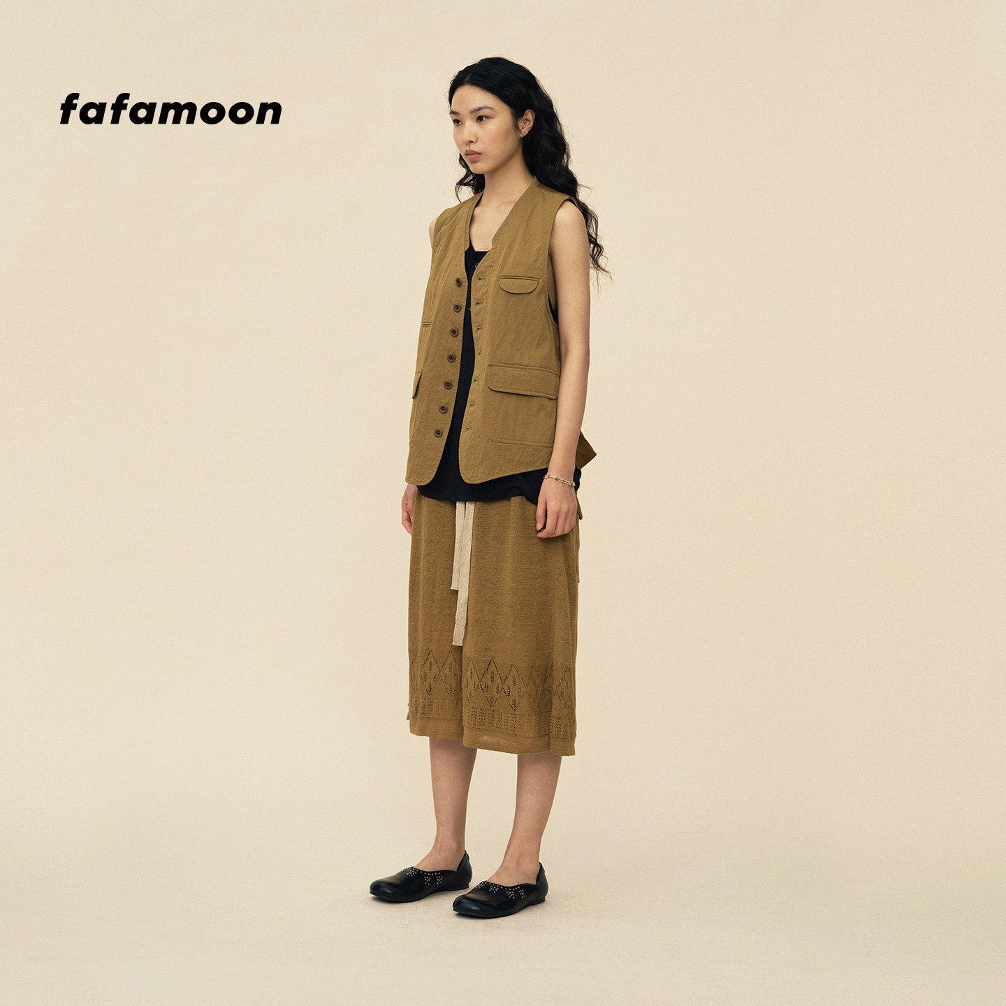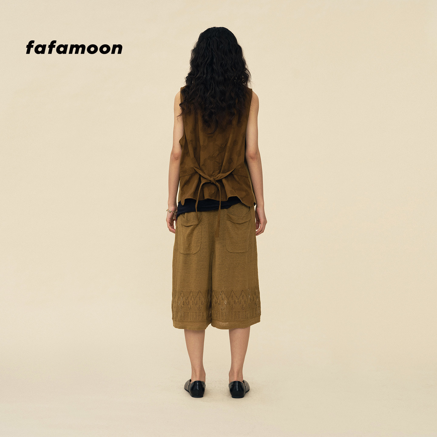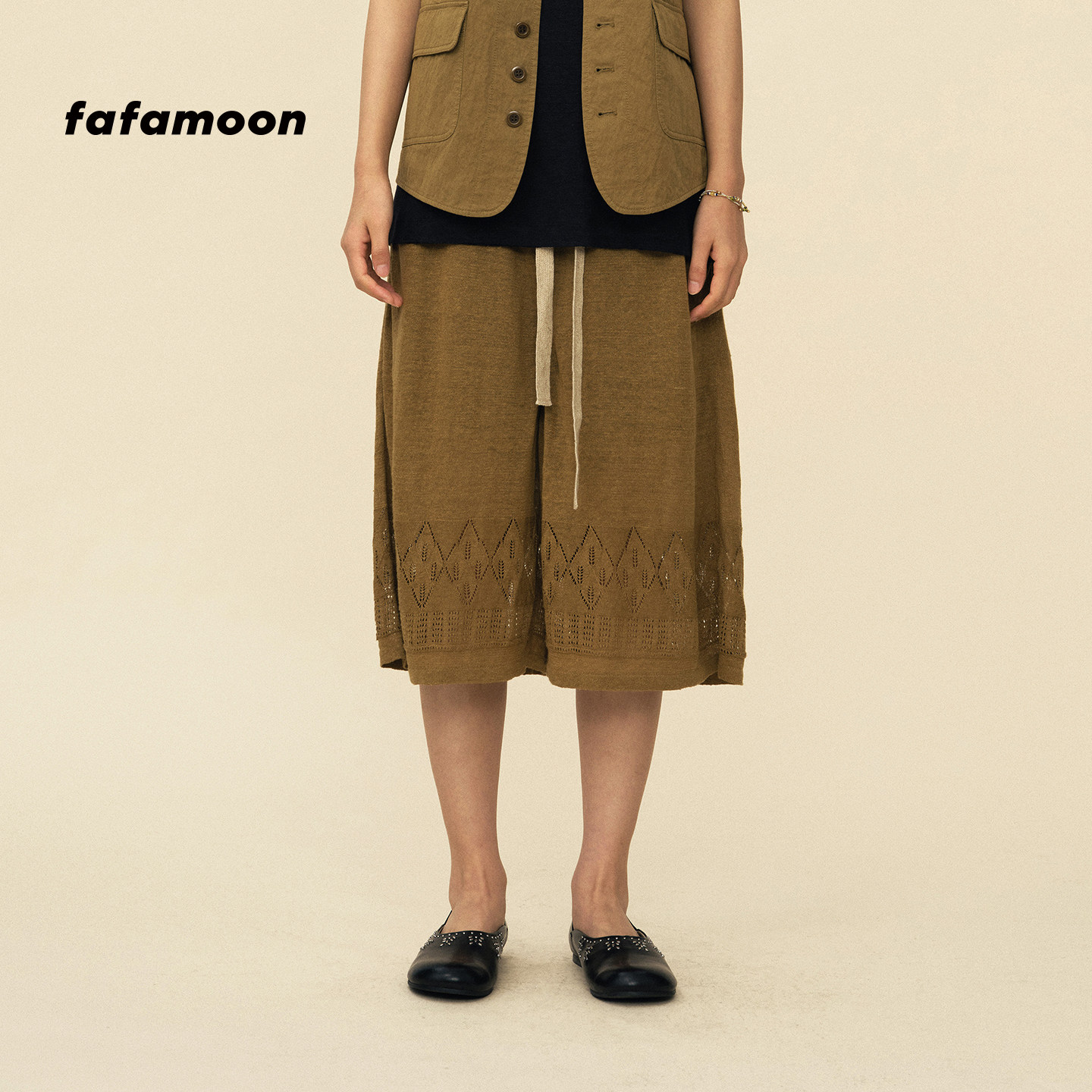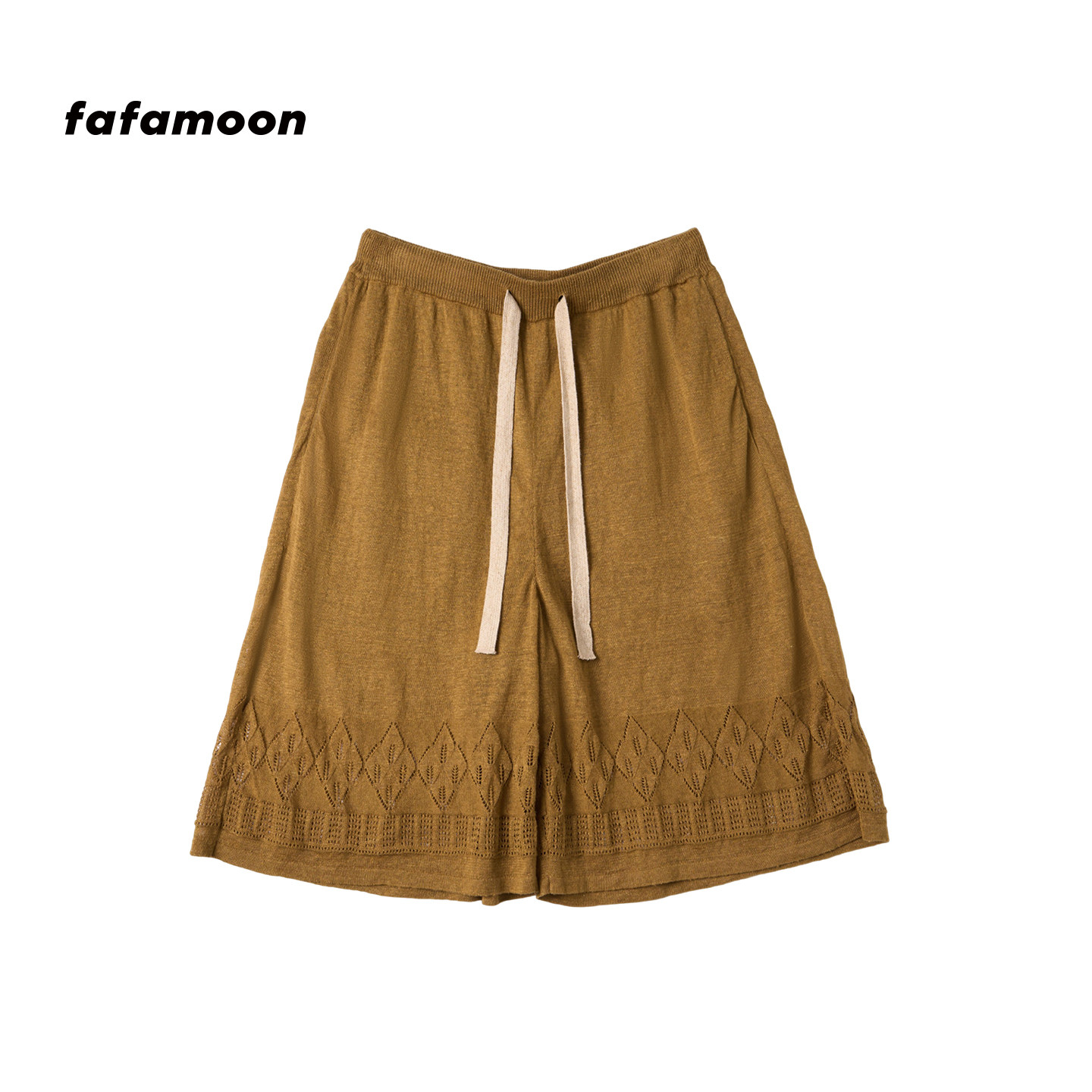 fafamoon设计师品牌 新品 亚麻镂空图案针织钩花中裤 2026春季