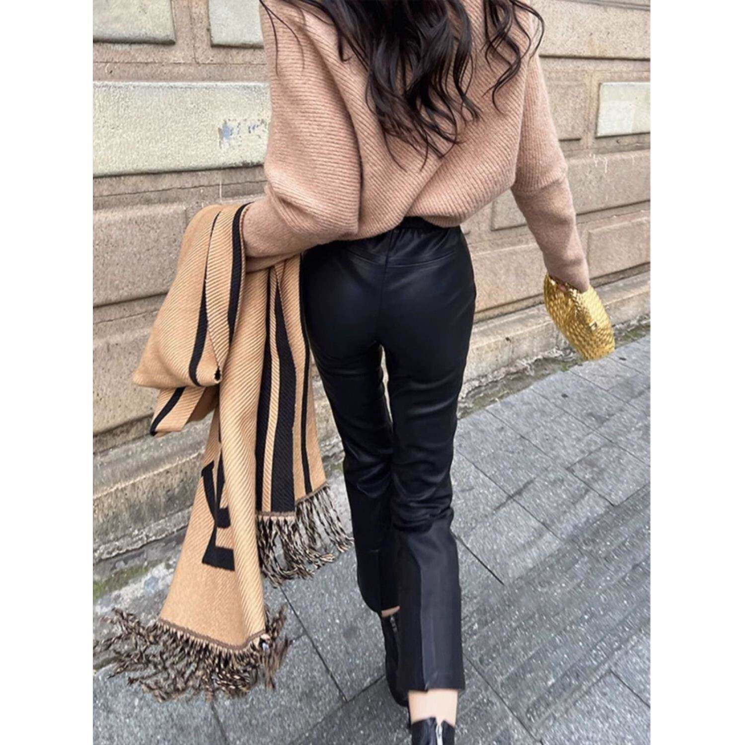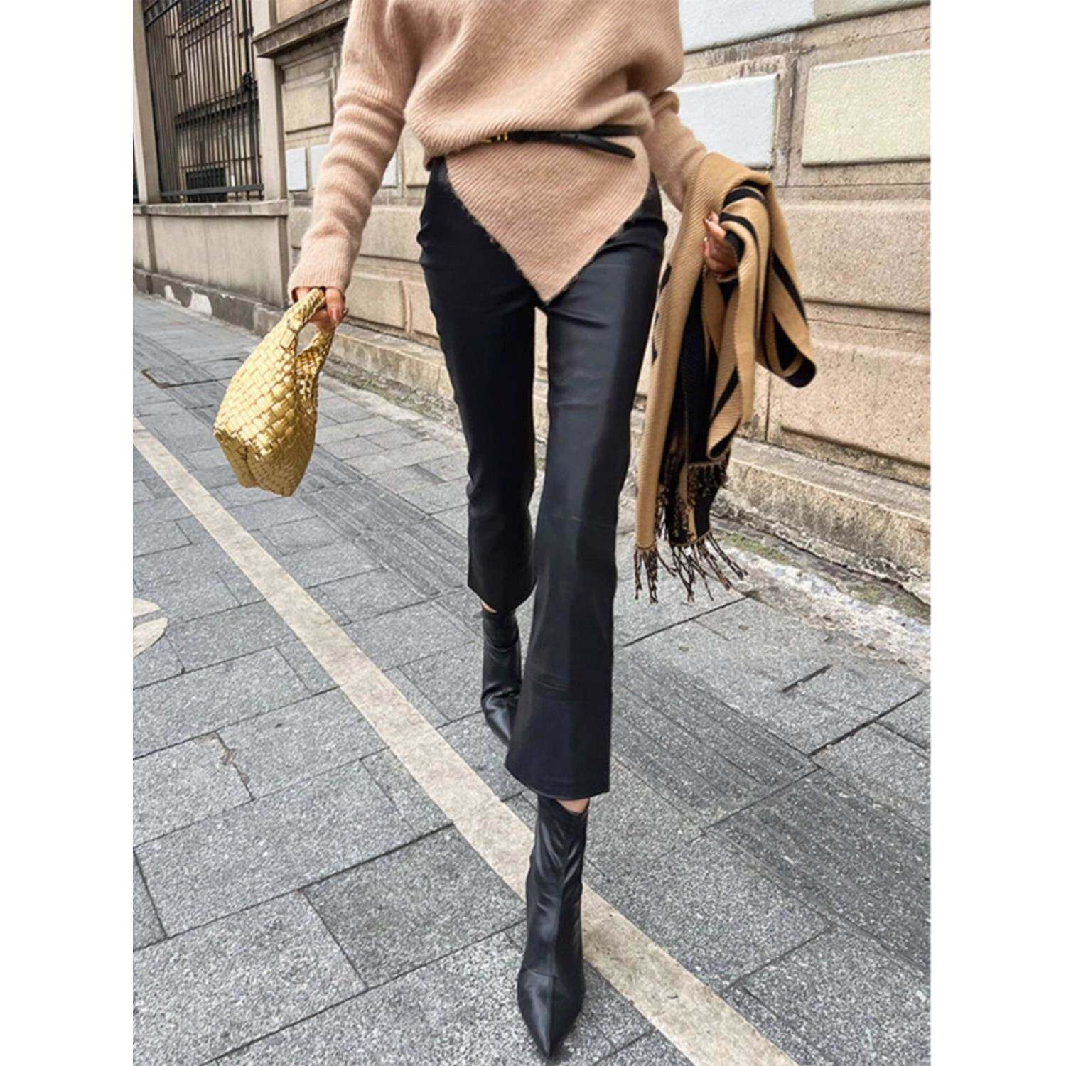 女打底裤 高级感休闲微喇叭裤 春秋款 皮裤 欧货2026爆款 黑色九分皮裤