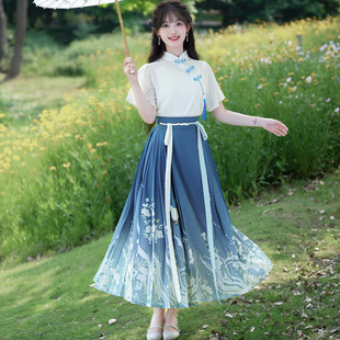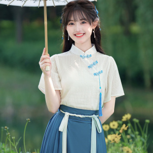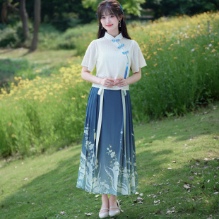 汉元 新中式 新款 2026夏季 素日常女上衣 国风少女马面裙旗袍两件套装