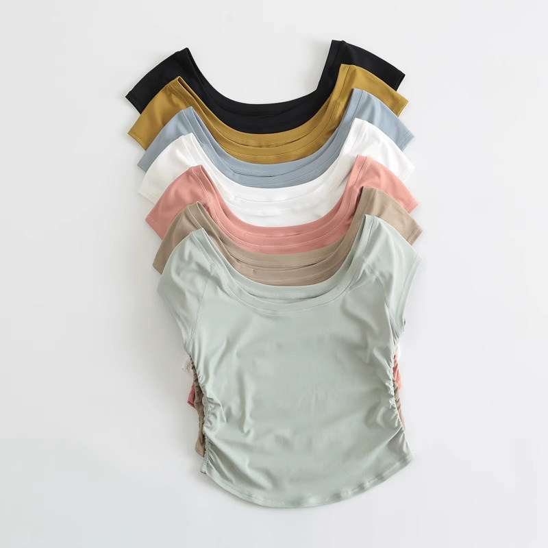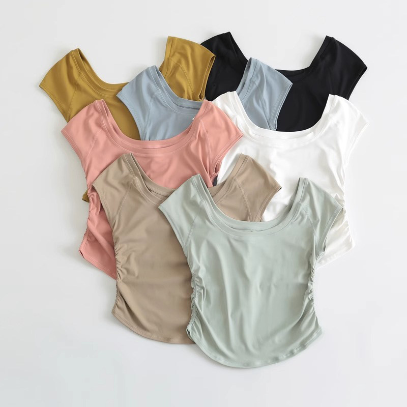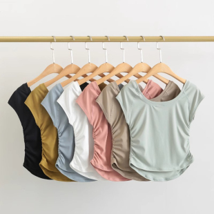 瑜伽服女夏健身短袖 显瘦跑步跳绳普拉提紧身T恤 运动上衣裸感修身