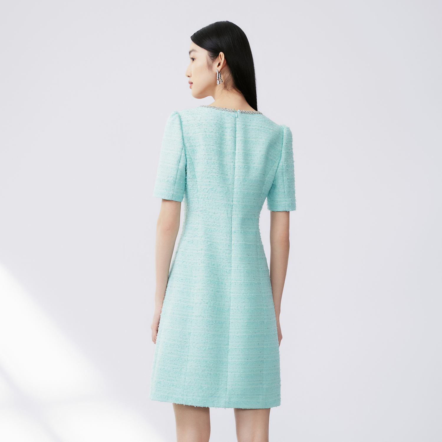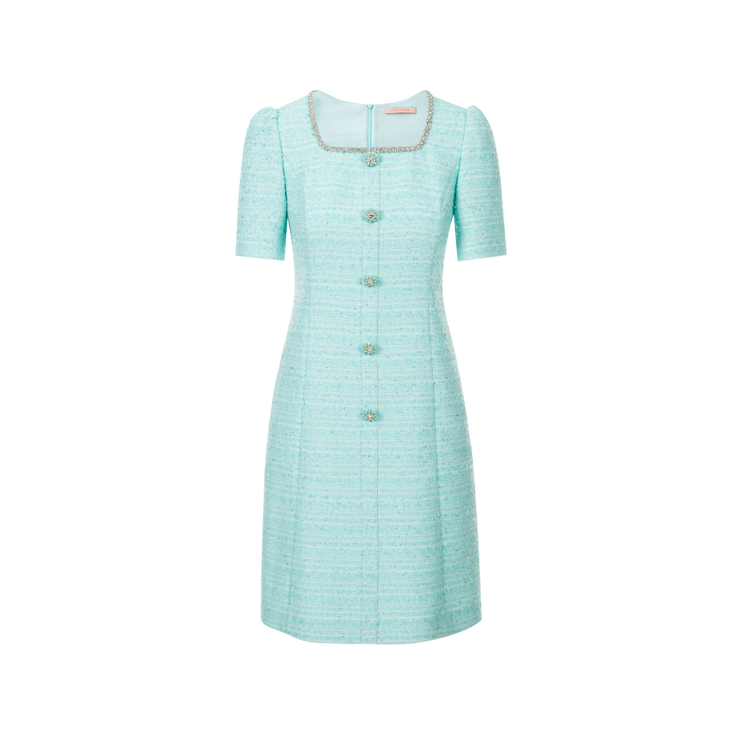 优雅裙子 方领法式 LIME莱茵小香风粗花呢连衣裙水绿色2024秋季 新款