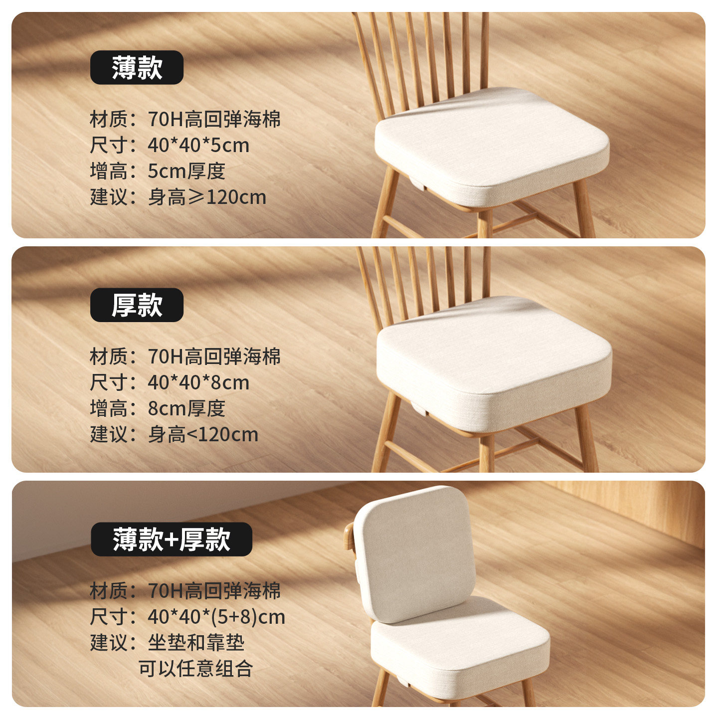 增高坐垫四季 屁垫椅子垫学生宿舍办公室久坐沙发海绵座垫加厚加硬