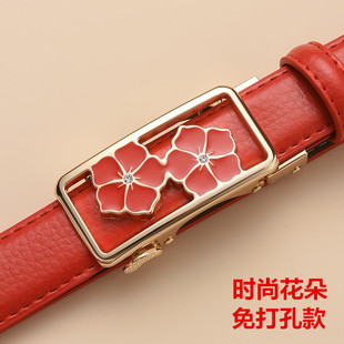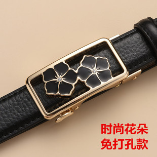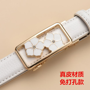 潮牛仔裤 新款 白色腰带百搭免打孔 韩版 女士皮带真皮自动扣牛皮时尚