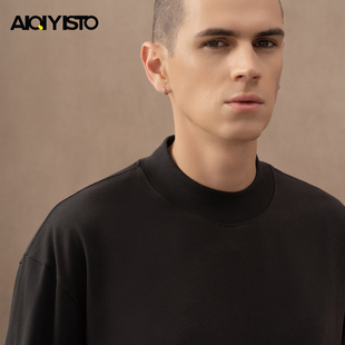 X1s索罗娜棉半高领纯色短袖 t恤男宽松落肩凉感抗皱速干透气抑菌夏
