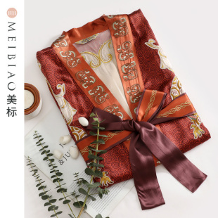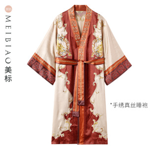 美标中国风桑蚕丝浴袍男士 真丝睡衣睡袍手工刺绣丝绸家居服 春夏季