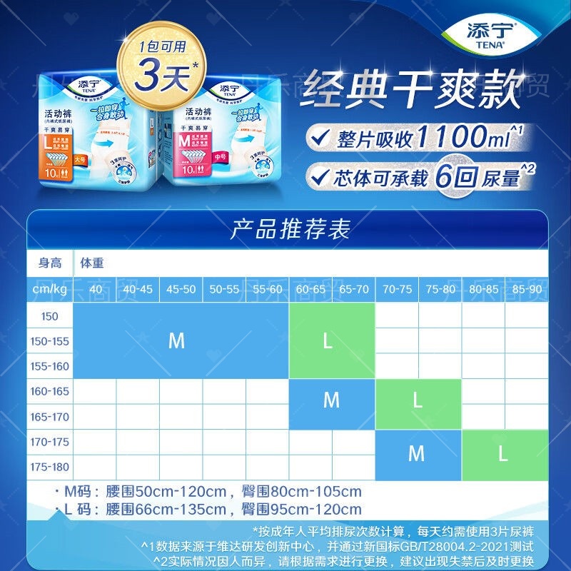 L码 老人用M 夜用 扇形尾翼设计卧床特护型瞬吸防漏大码 添宁拉拉裤