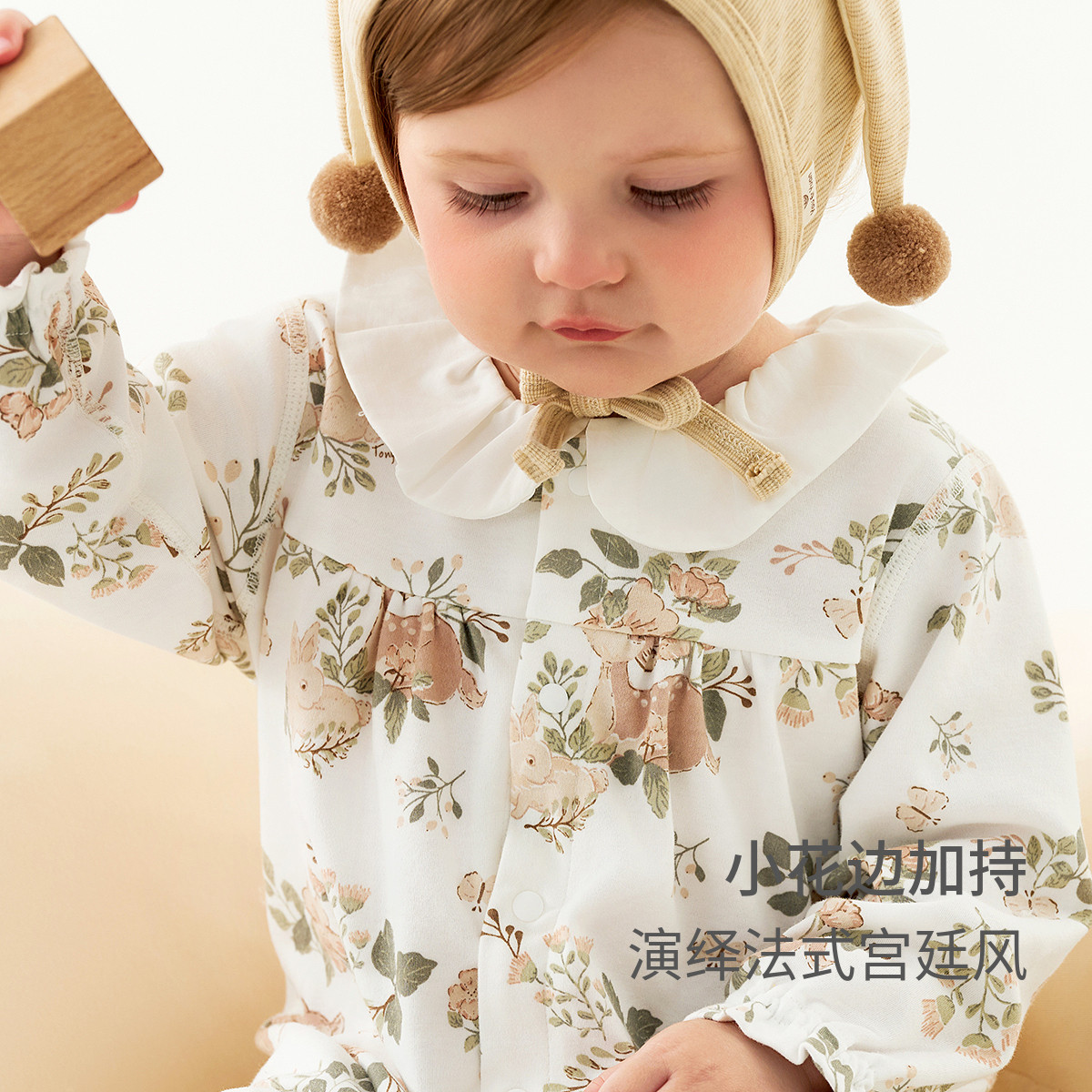 童泰婴儿连体衣春秋季 纯棉女宝宝衣服新生儿哈衣爬服儿童花边睡衣