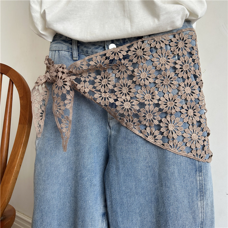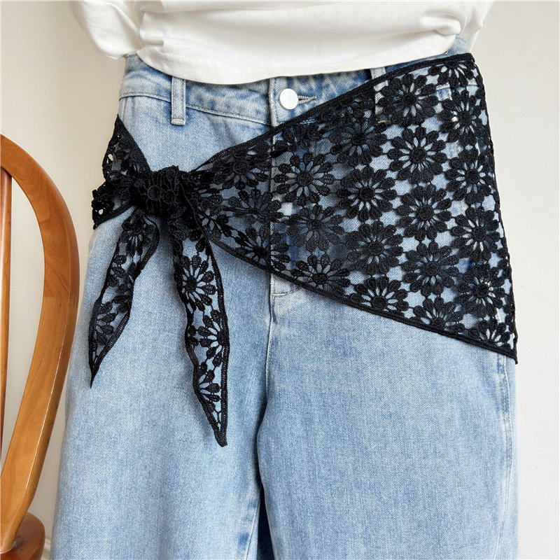 复古蕾丝腰带女三角巾新款 饰腰间配饰 花边丝巾韩系屁帘叠穿罩裙装