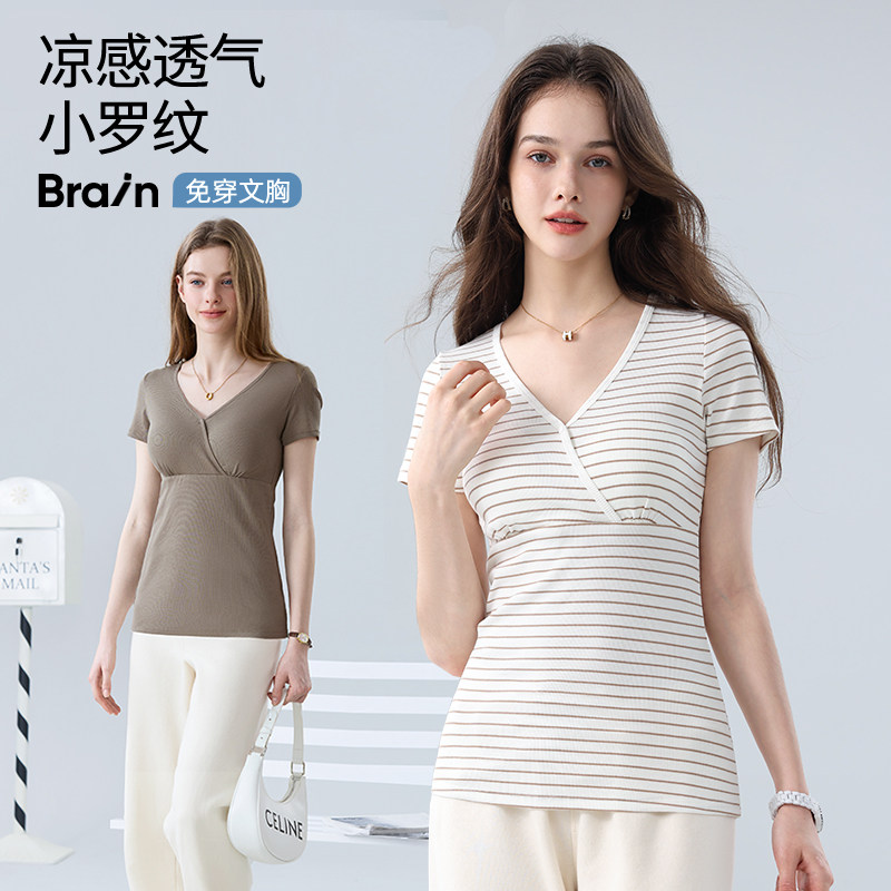 t恤孕妇装 打底衫 上衣外出辣妈款 薄款 喂奶潮妈带胸垫 夏季 哺乳短袖