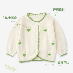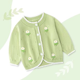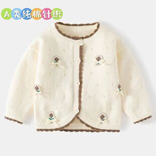 上衣服小月龄婴幼儿外出毛衣 洋气打底衫 女宝宝针织开衫 外套春秋装