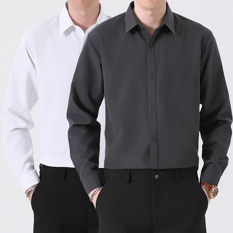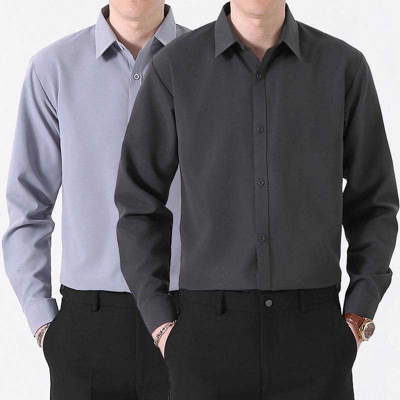 商务休闲正装 衬衫 高级感免烫百搭上班蓝黑色衬衣男 长袖 深灰色男士