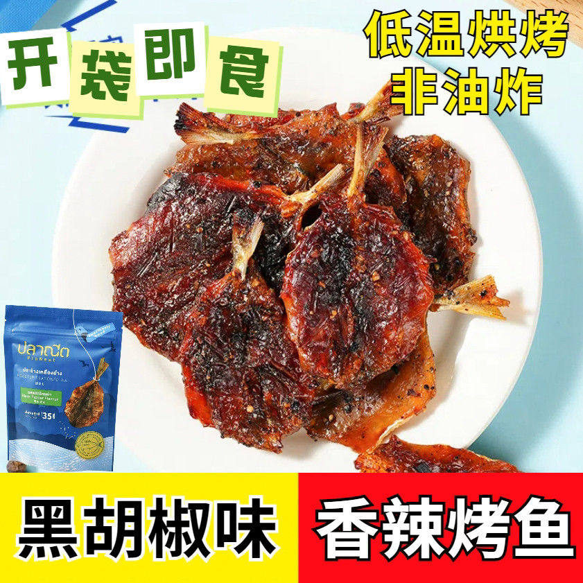 烤鱼片芭腻泰国进口烤鲹鱼片原味辣味深海鱼过年即食休闲零食年货