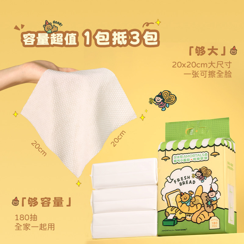亲肤 洗脸巾加大加厚一次性洁面巾抽取式 小面包联名 尔木萄悬挂式