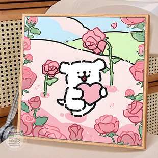 线条小狗数字油画diy填充填色手工绘卡通情侣丙烯油彩涂色装 饰画