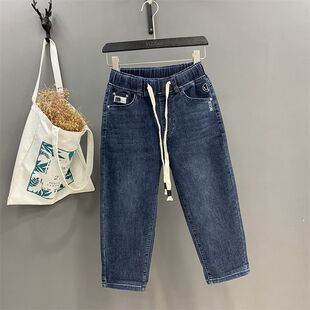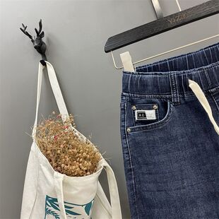遮肉直筒中裤 女夏薄松紧高腰哈伦裤 牛仔七分裤 200斤胖MM宽松大码