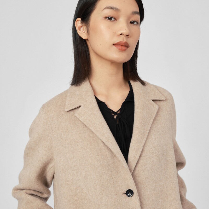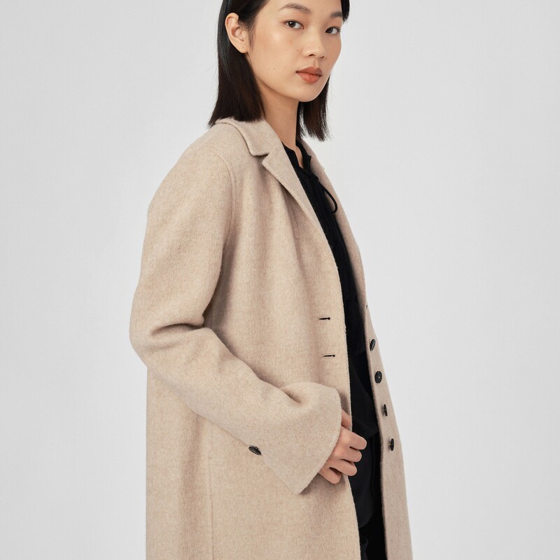 素然WHM美拉德驼绒时尚 简约微喇廓形羊毛双面呢大衣
