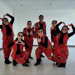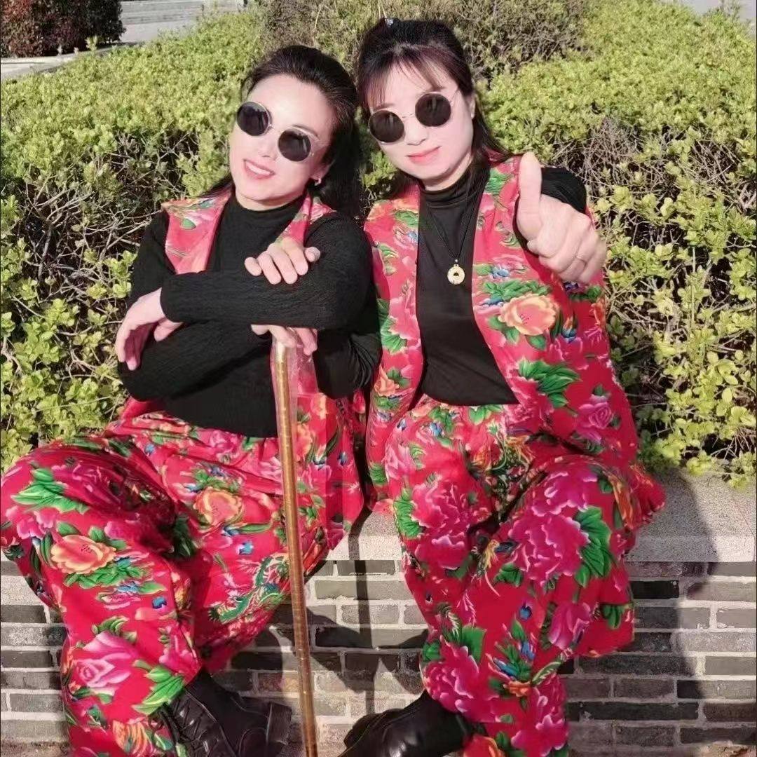 秧歌服广场舞二人转服装 网红从小卖蒸馍东北大花布马甲灯笼裤 套装