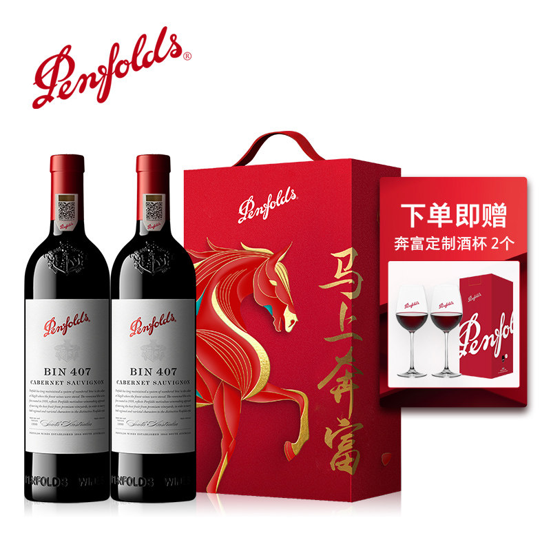 奔富BIN407红酒马年生肖礼盒装 行货 赤霞珠进口葡萄酒送礼官方正品