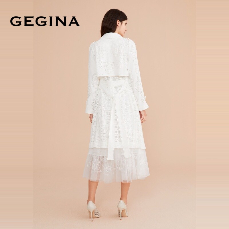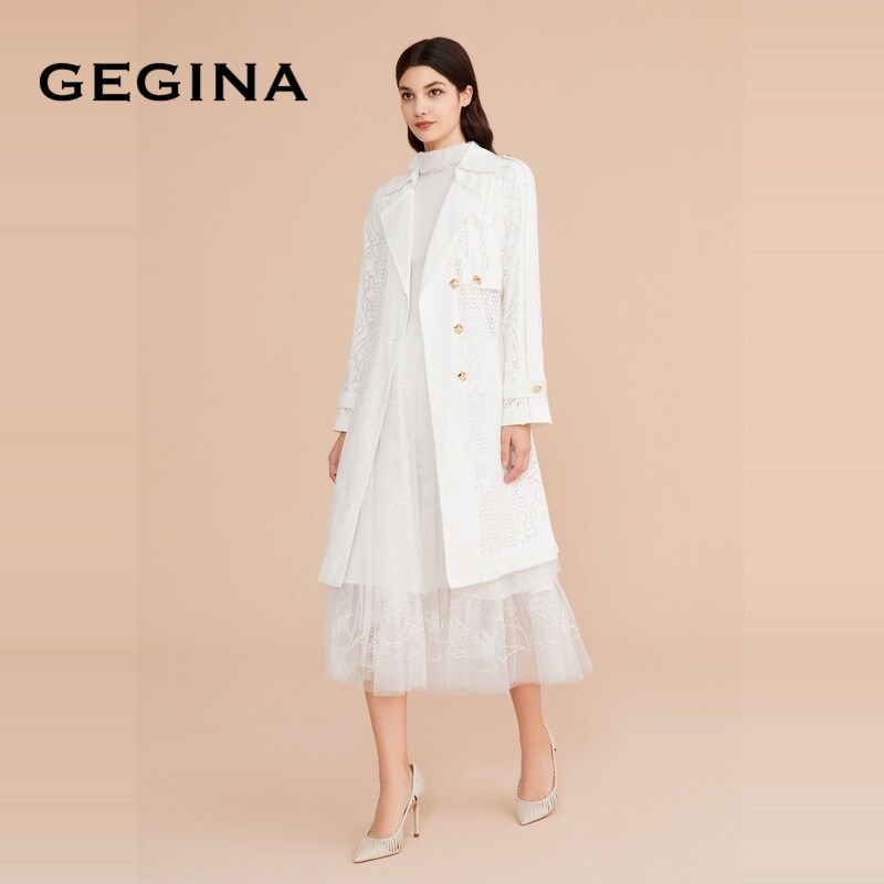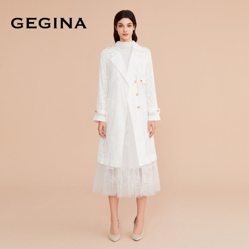 百搭气质外套女商场同款 GEGINA吉吉娜女装 纯棉蕾丝风衣外套中长款