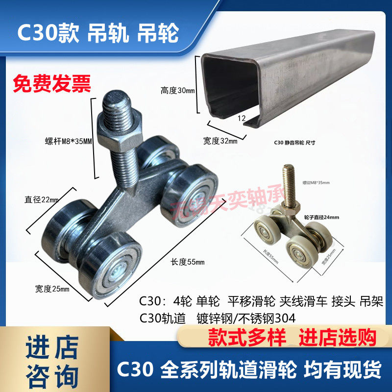 C30重型吊轮移门滑轮推拉门轴承小吊轮鸽舍轨道轮行车轮承重100kg