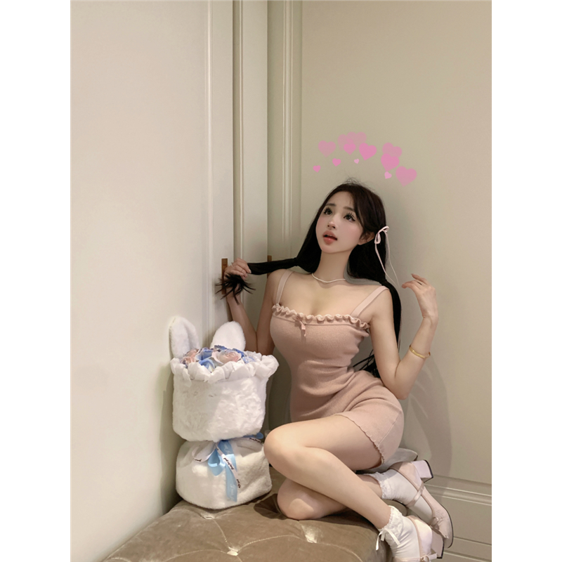 纯欲性感甜美辣妹针织吊带连衣裙女秋冬季 紧身显瘦气质包臀短裙子