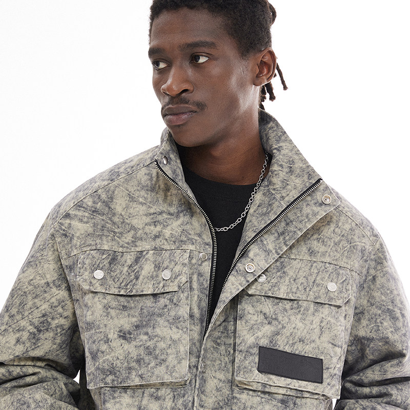 工装 复古夹棉加厚棉服女秋冬新款 派克服外套潮 胖mm美式 300斤大码