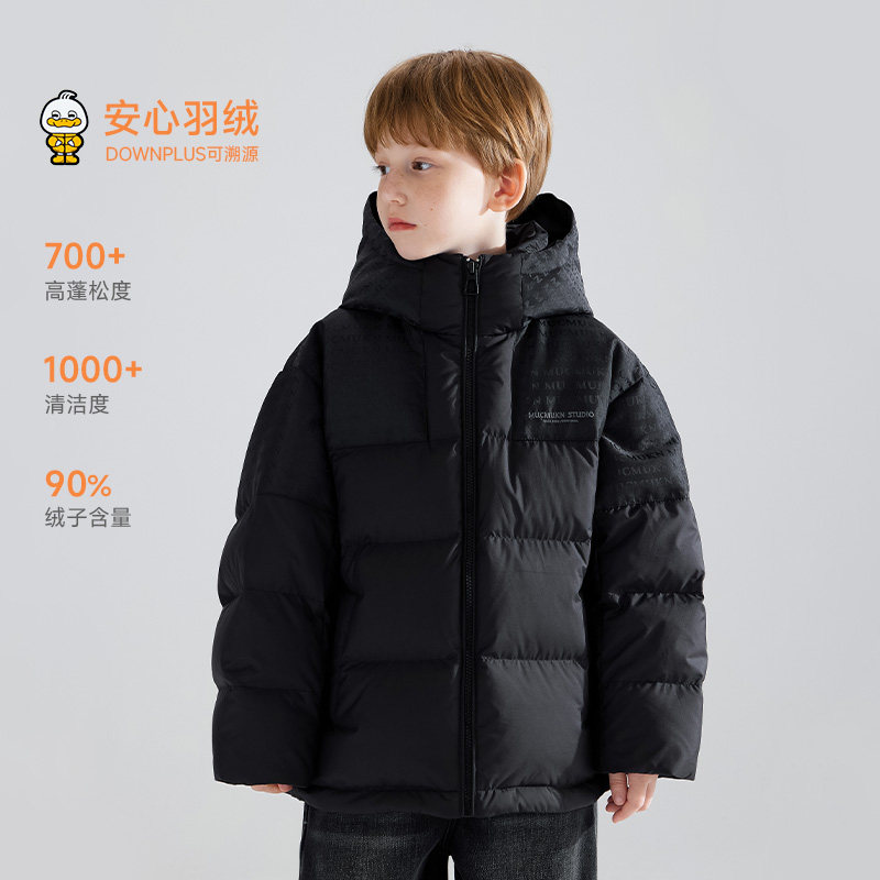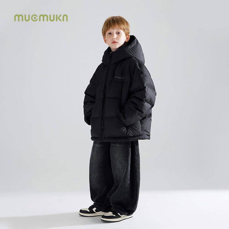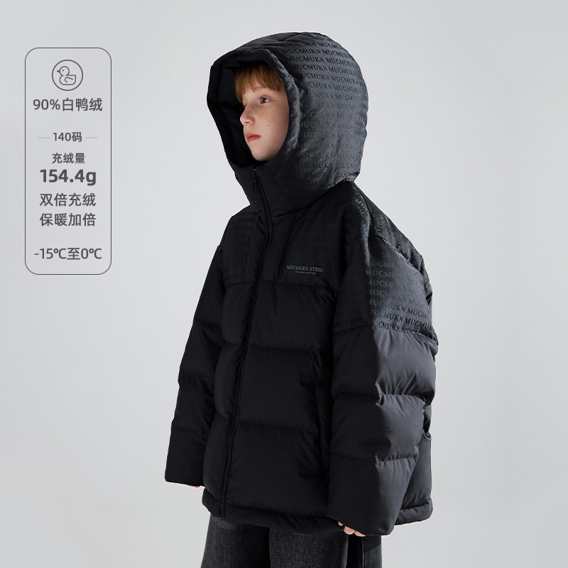MUCMUKN童装 安心绒高充绒复古提花羽绒服防水90白鸭绒男童 冬装