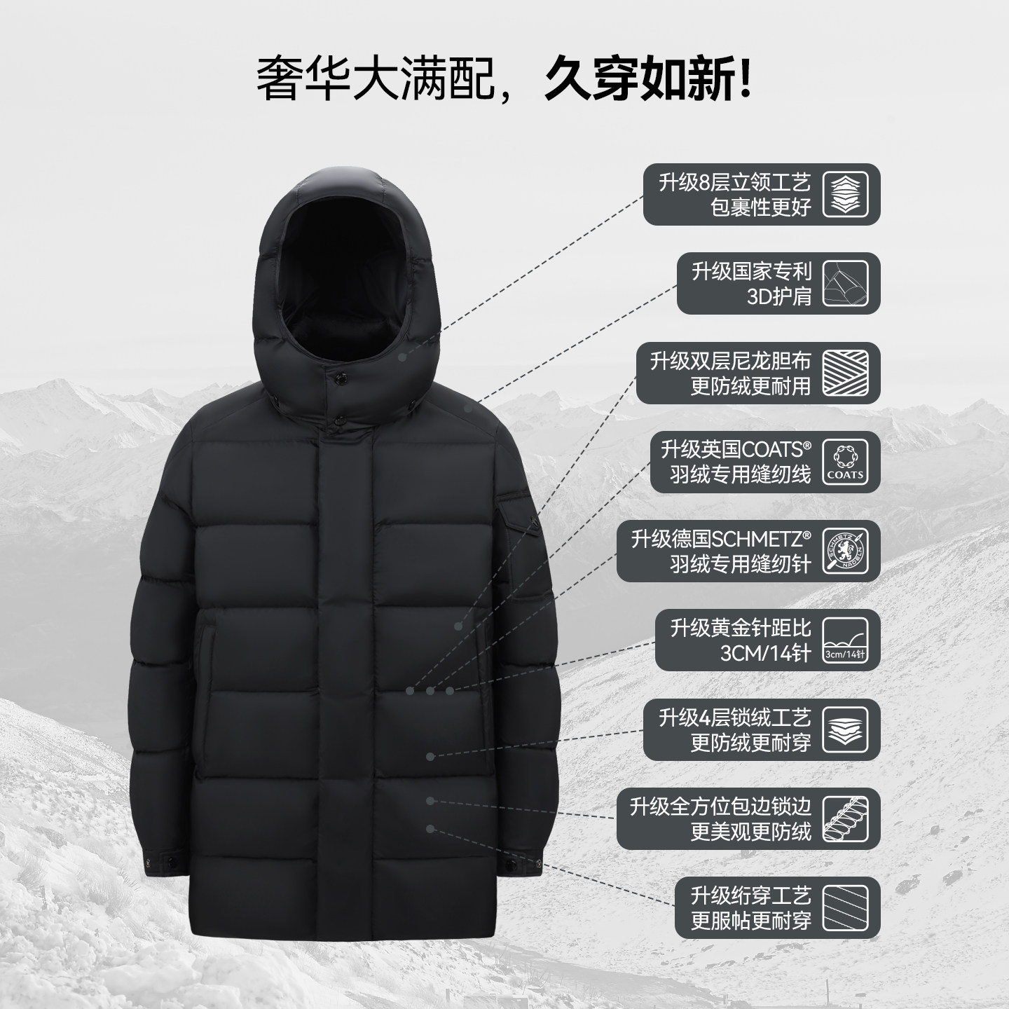 雪中飞2025男士 简约商务休闲连帽羽绒服直筒显瘦加厚保暖S 中长款