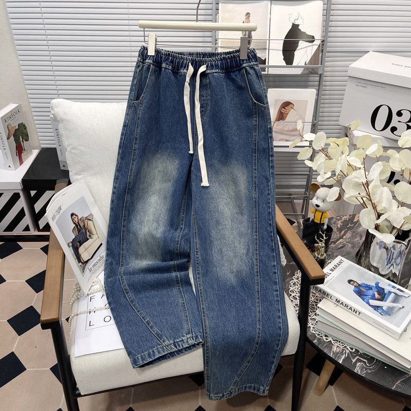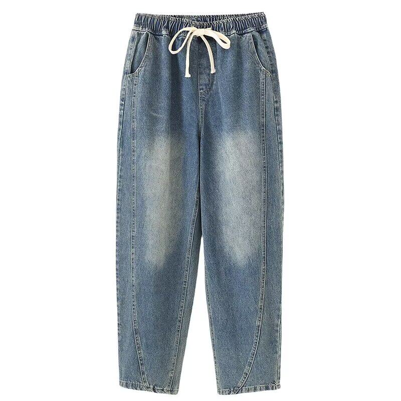 哈伦牛仔裤 长裤 子韩版 高腰复古老爹裤 女 胖mm显瘦萝卜裤 胡子叔大码