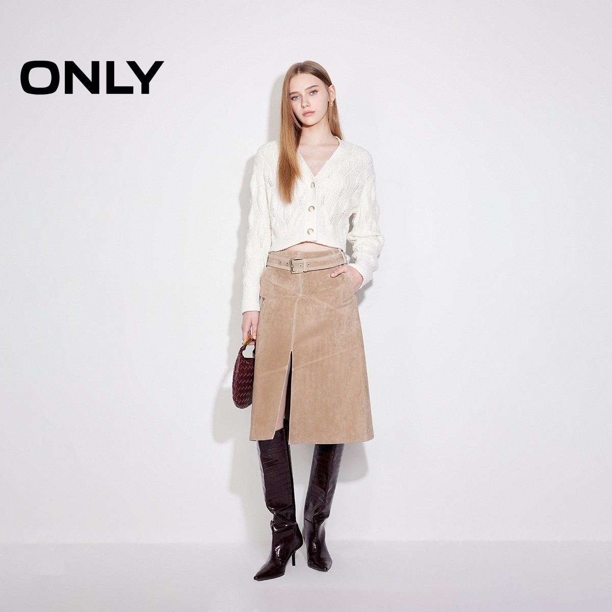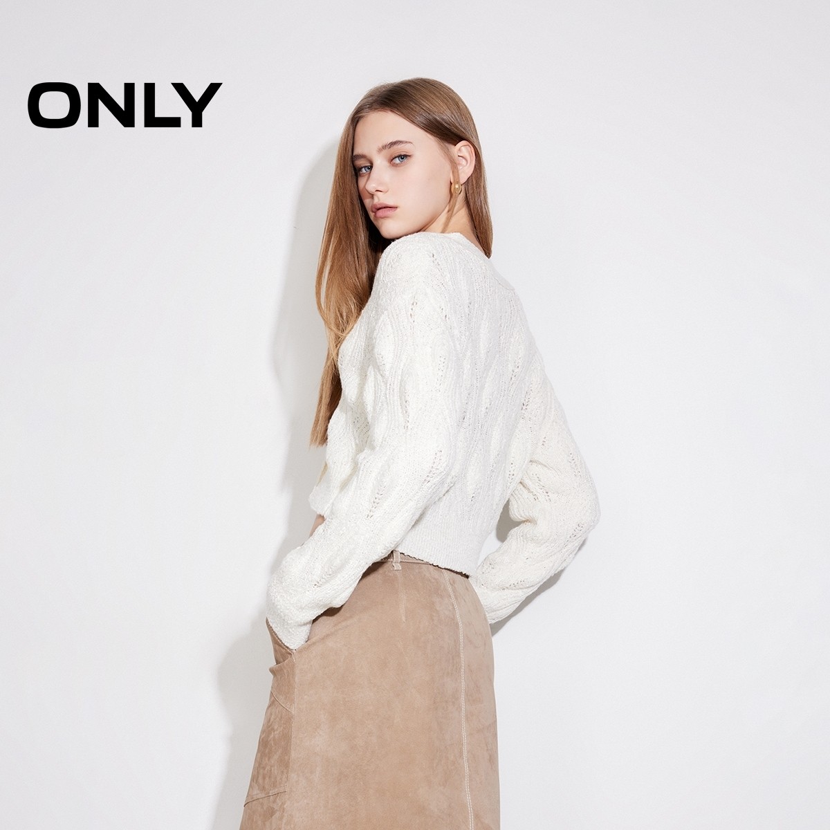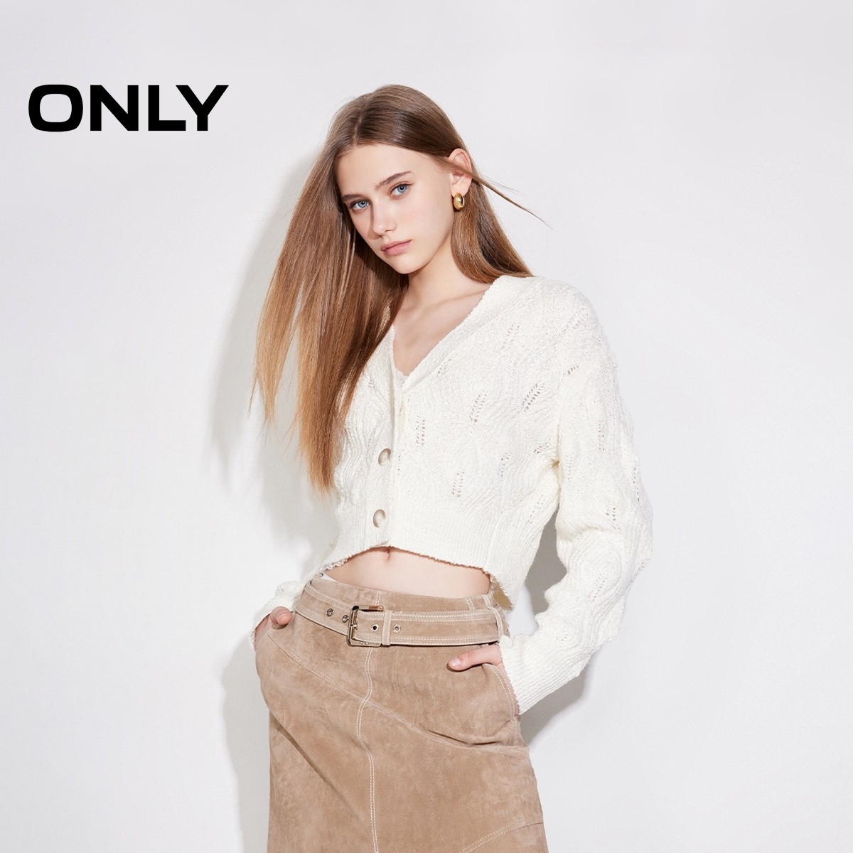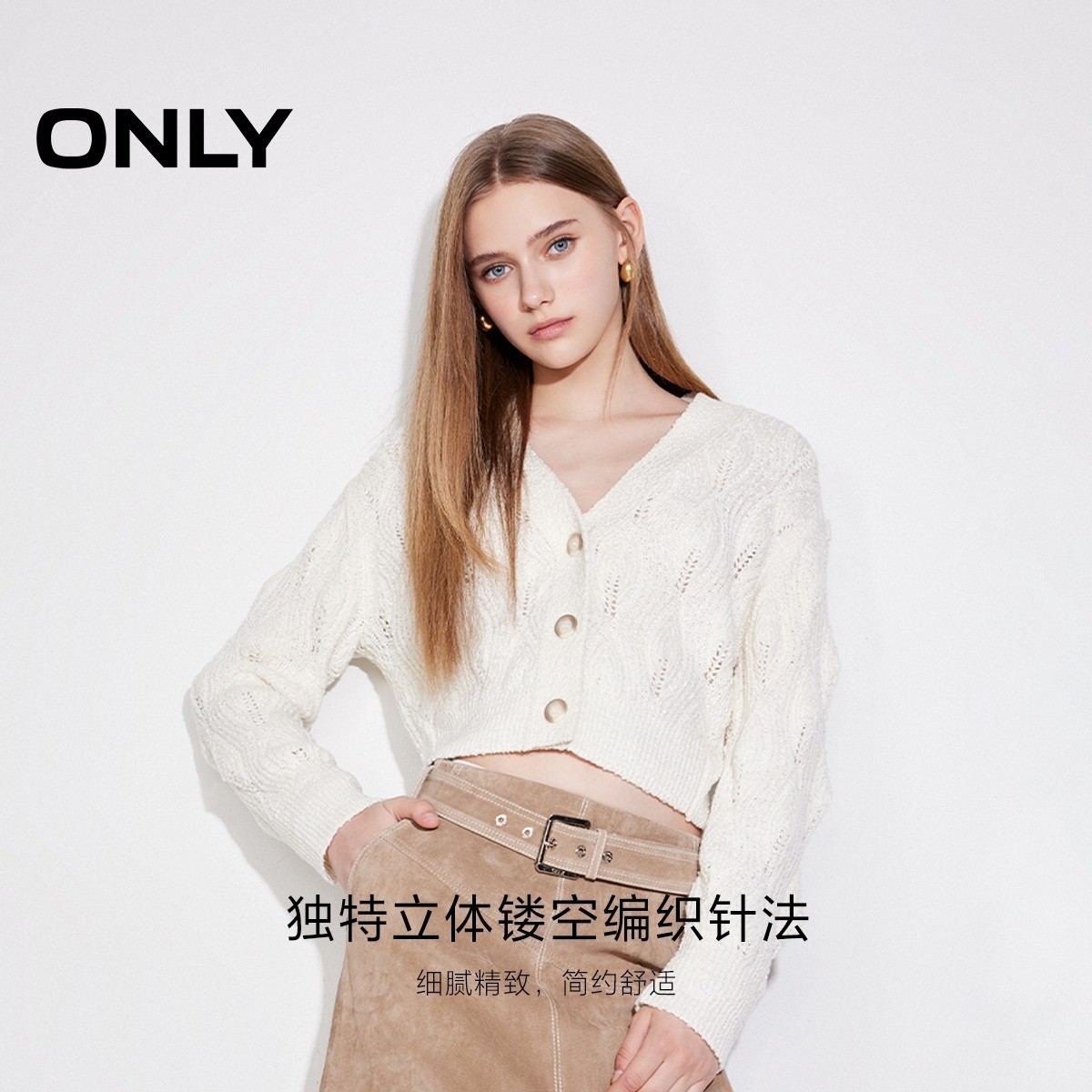 新款 针织衫 简约舒适纯色显瘦宽松短款 长袖 女 V领开衫 ONLY2025秋季