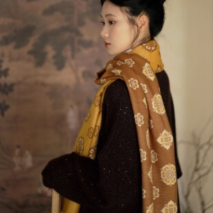 茱萸CORNUS 仿羊绒国风披肩女汉服显白闺蜜唐风宝相花