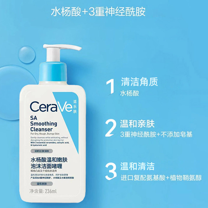 CeraVe 适乐肤水杨酸洗面奶473ml氨基酸泡沫温和清洁面乳敏感肌用
