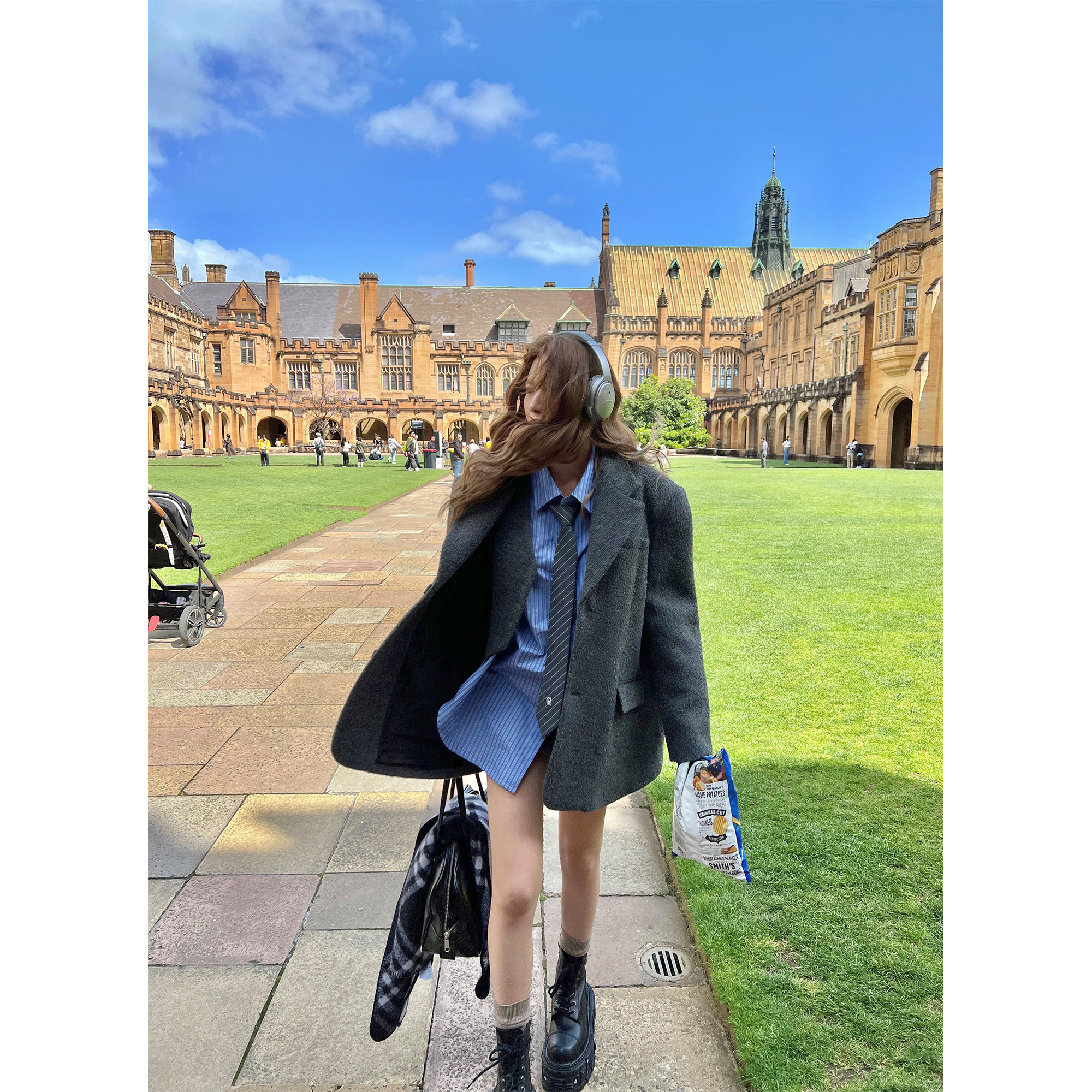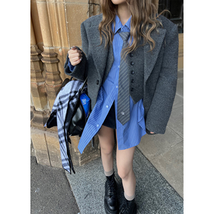 格雷系西装 预科生风 马甲斜纹圈圈呢50羊毛三件套 Lin Xinlei