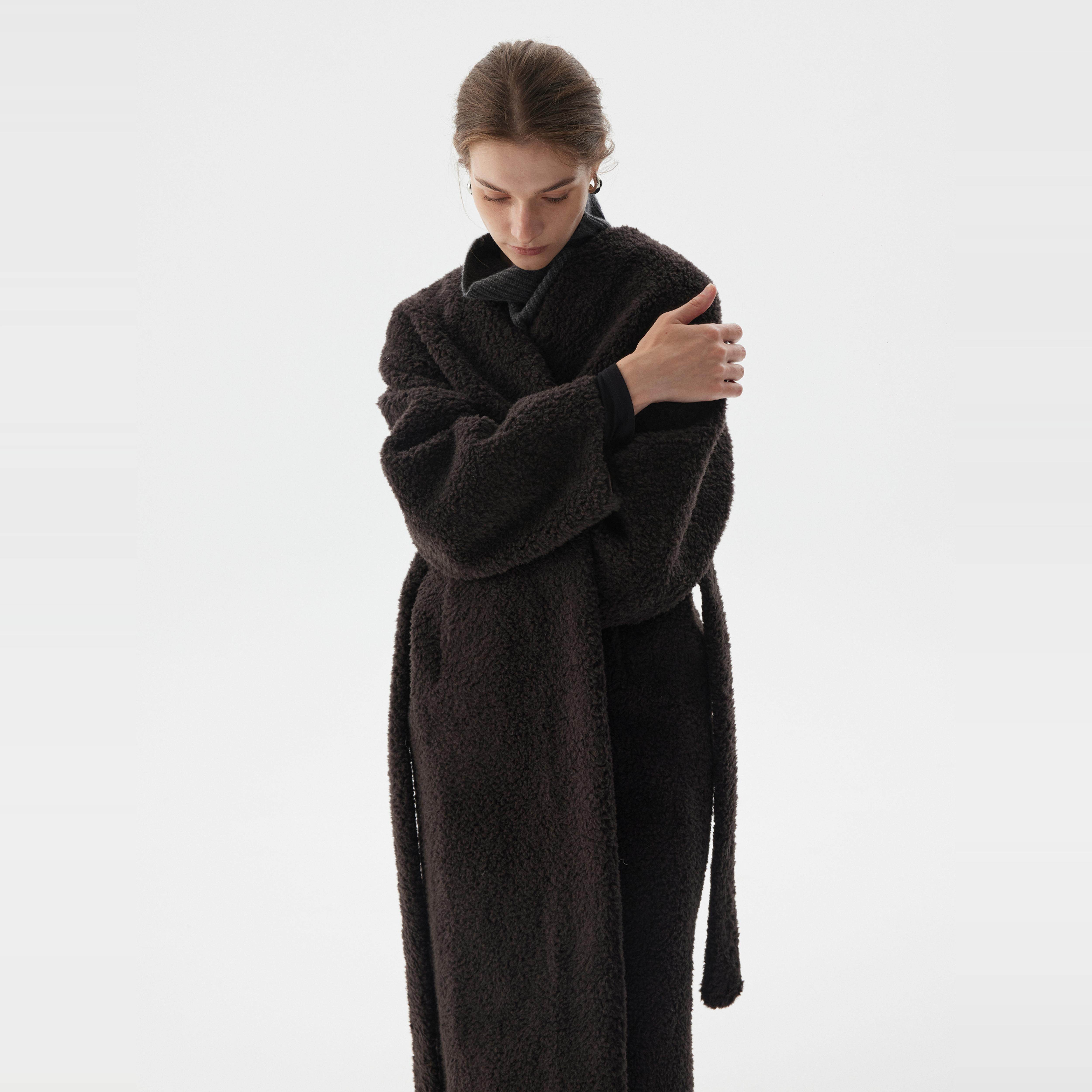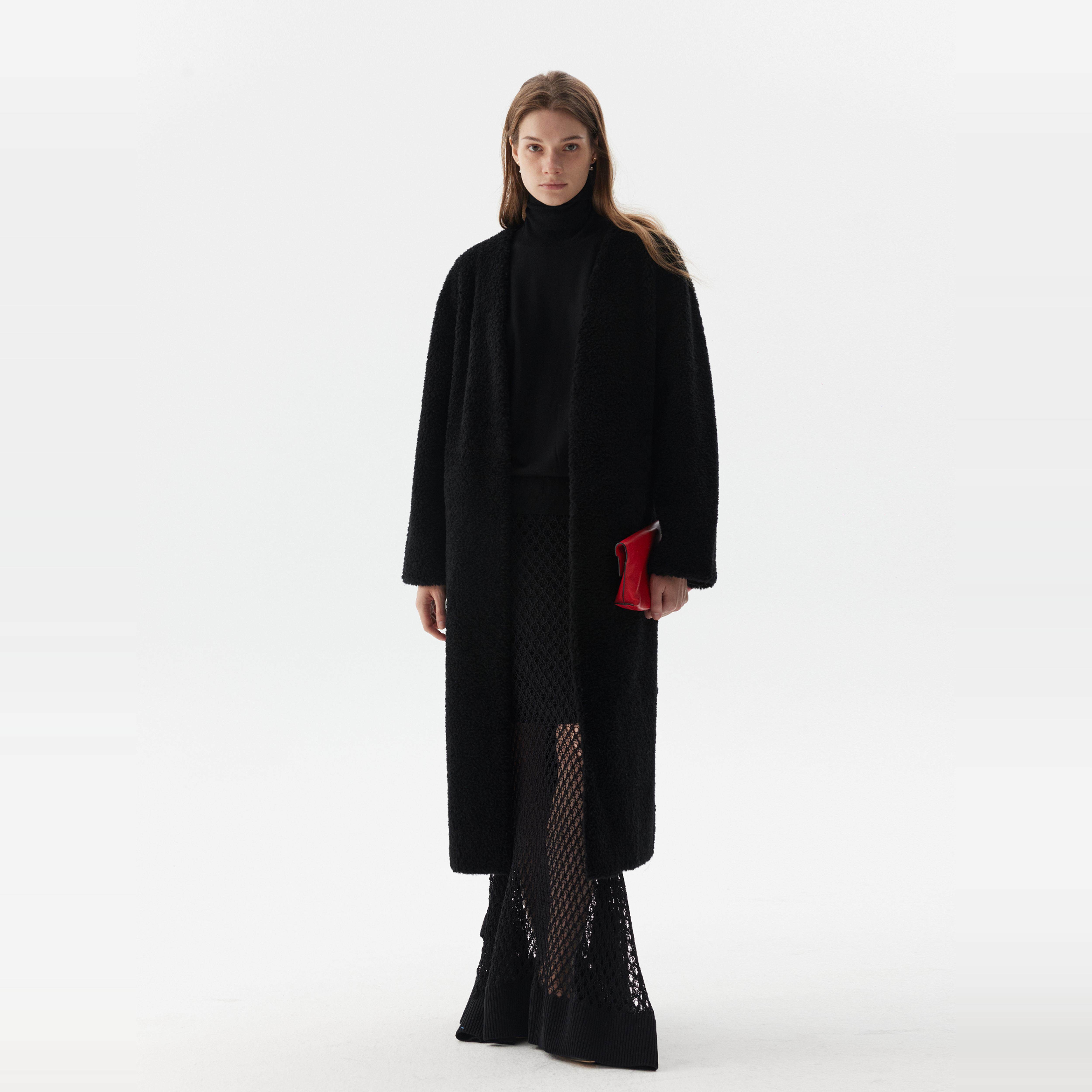 SoftSelf·和煦之墨新款 皮草 复古羊羔毛保暖舒适皮毛一体v领长款