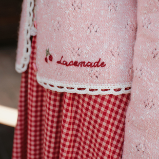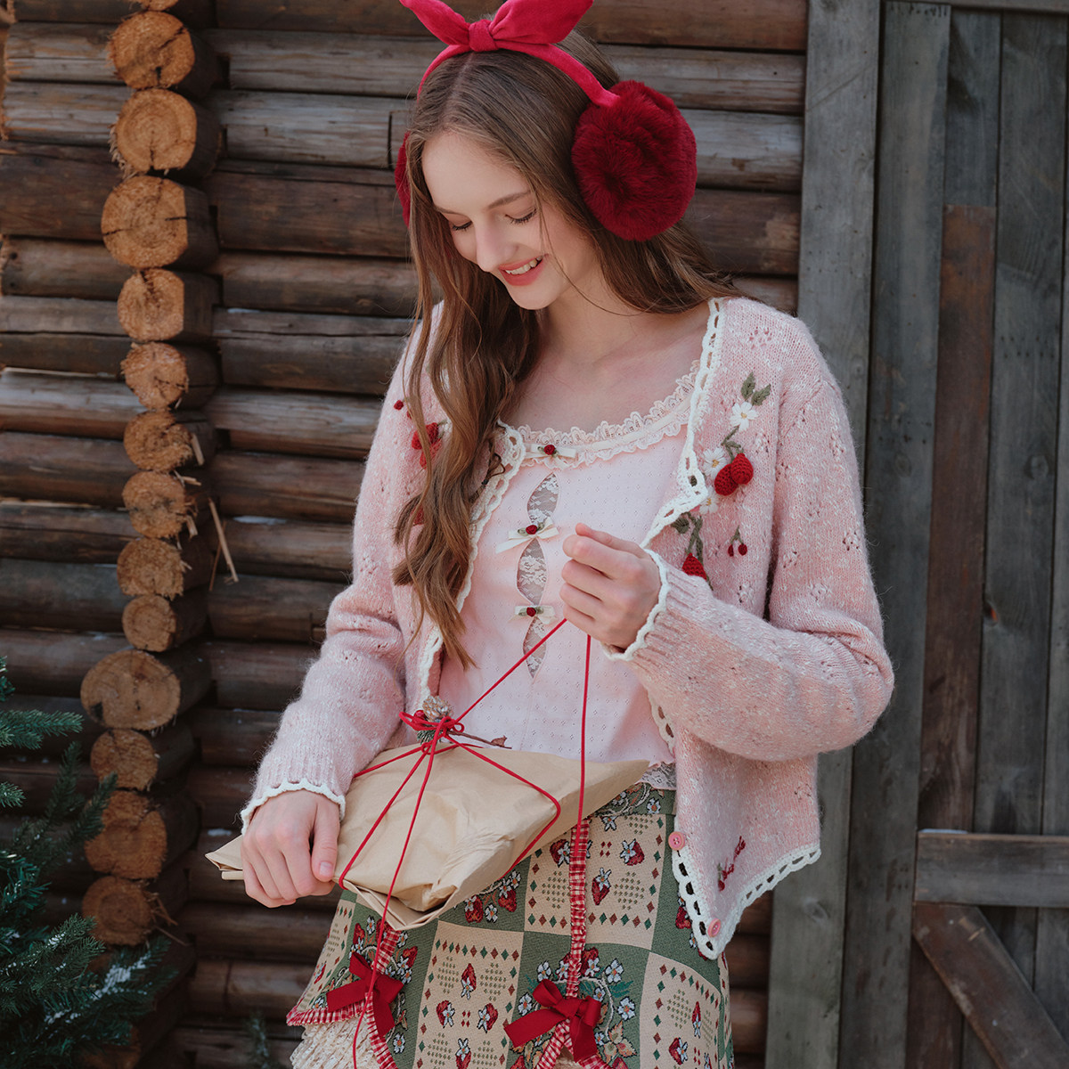 学院少女重工粉色羊毛针织开衫 法式 外套秋冬 草莓圣诞树 LaceMade