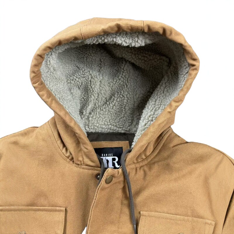 厚棉里拼羊羔毛冬季 牛X尾货 重磅工装 直筒连帽帆布棉衣 外套 美式