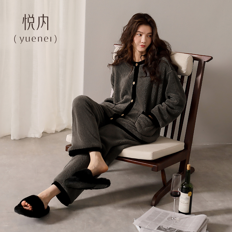 悦内睡衣女秋冬季 法兰绒加绒加厚珊瑚绒家居服冬天保暖小香风 冬款