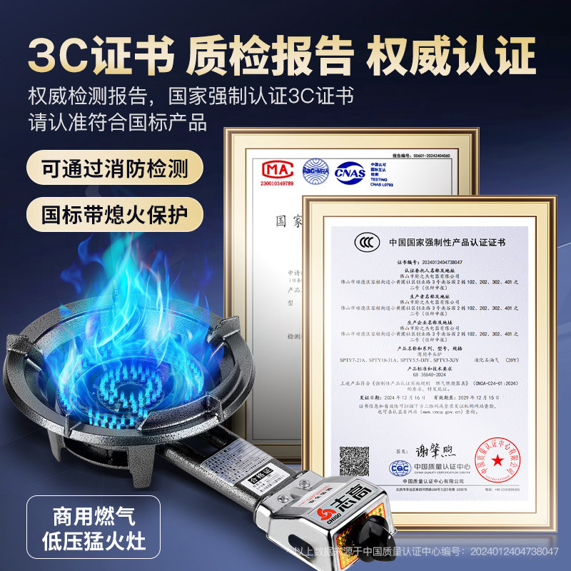 志高商用燃气灶低压猛火灶单灶液化气天然气节能煤气炉带熄火保护