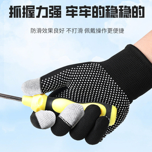 手套劳保耐磨工作触屏尼龙防滑薄款 透气防晒打包骑行漏指开车夏季