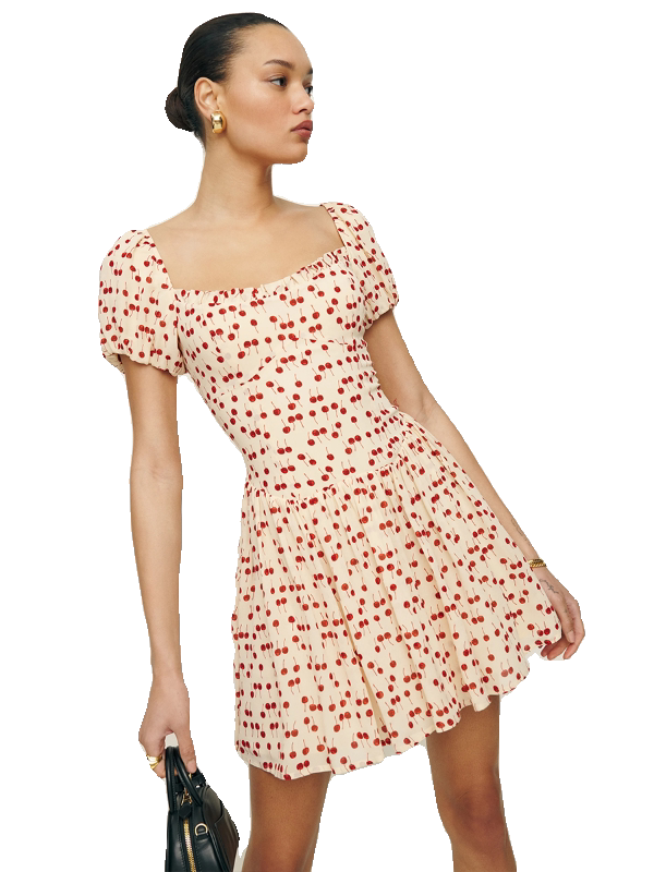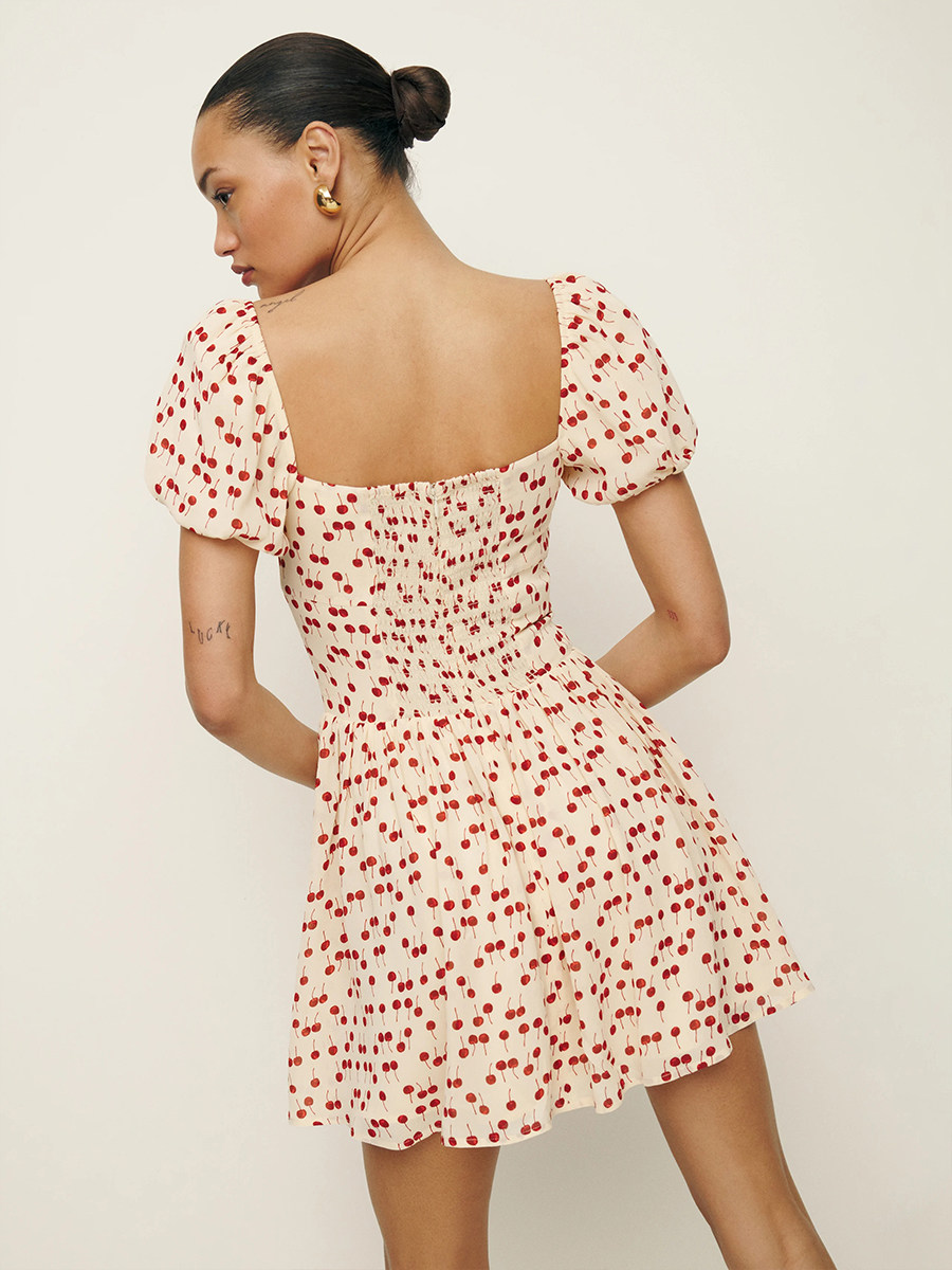 reformation连衣裙短款 RETURNSELF法式 印花收身露背优雅泡泡袖