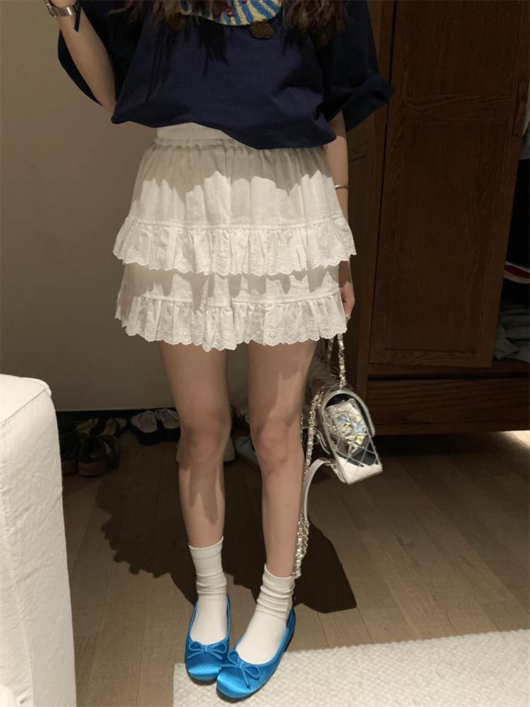 层次感高腰蛋糕半身裙女夏 韩版 荒荒家 白色花边蓬蓬短裙2025新款